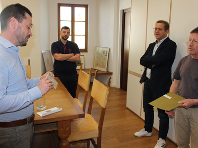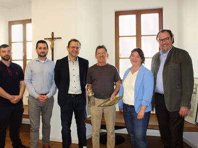 15 Jahre hat Hannemann für Abensberg gearbeitet. Als Maler und Lackierer war er im Grunde für „eigentlich alles, was anfällt“, zuständig. Er war im Freibad mit der Beckengestaltung beschäftigt, der Kneipp-Anlage einen neuen Anstrich verpasst, Fassaden aller Art gefärbt oder geweißelt, war bei der Umwandlung der Bücherei zur Stadtmaus beschäftigt („Das war herausfordernd“), das sogenannte „Weiße Haus“ hergerichtet, alle Fenster am Aventinum  ebenfalls  und die verschiedenen Sitzgelegenheiten in der Stadt aufgefrischt. Zum gemeinsamen Treff im Rathaus kam er gerne, auch wenn er eigentlich beim Umzug seiner Tochter eingeplant war – einen Maler kann man immer und überall brauchen. „Schön, dass wir zusammenkommen“, so der Bürgermeister. Er dankte Hannemann herzlich für seinen Dienst und wünschte ihm einen schönen Ruhestand. Die Verantwortlichen vom Bauamt, vom Hauptamt und vom Personalrat schlossen sich überaus herzlich an. Hannemann dankte allen herzlich und sagte, die Stadt Abensberg sei „ein super Arbeitgeber“ gewesen. Das freute alle Anwesenden.