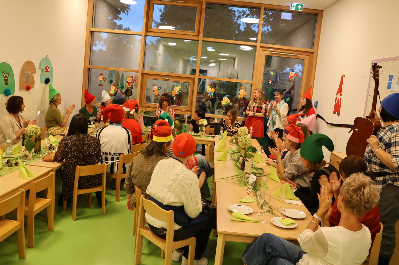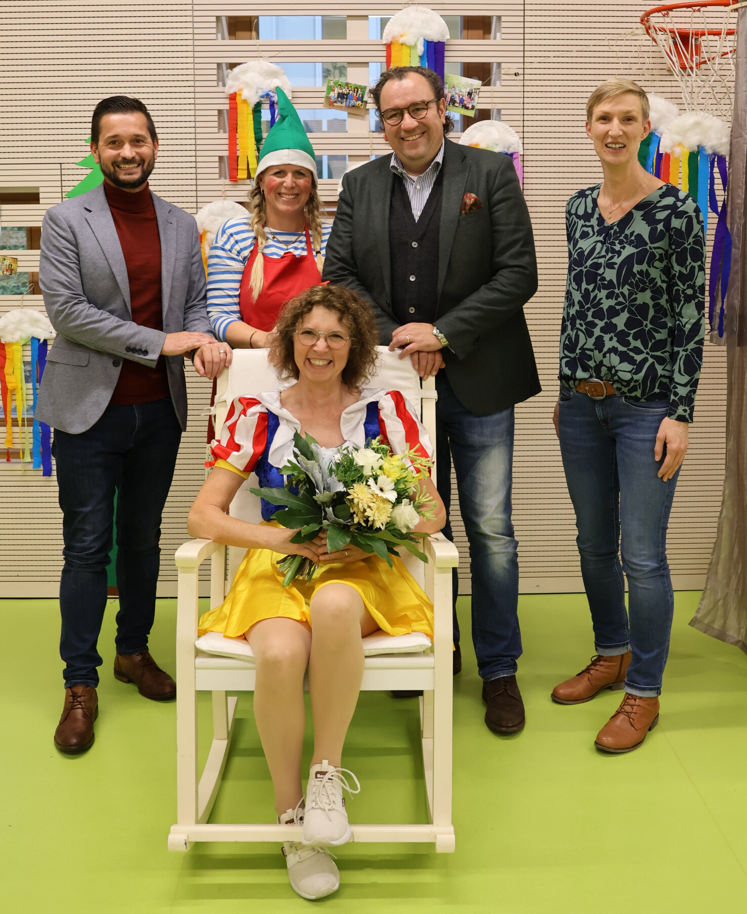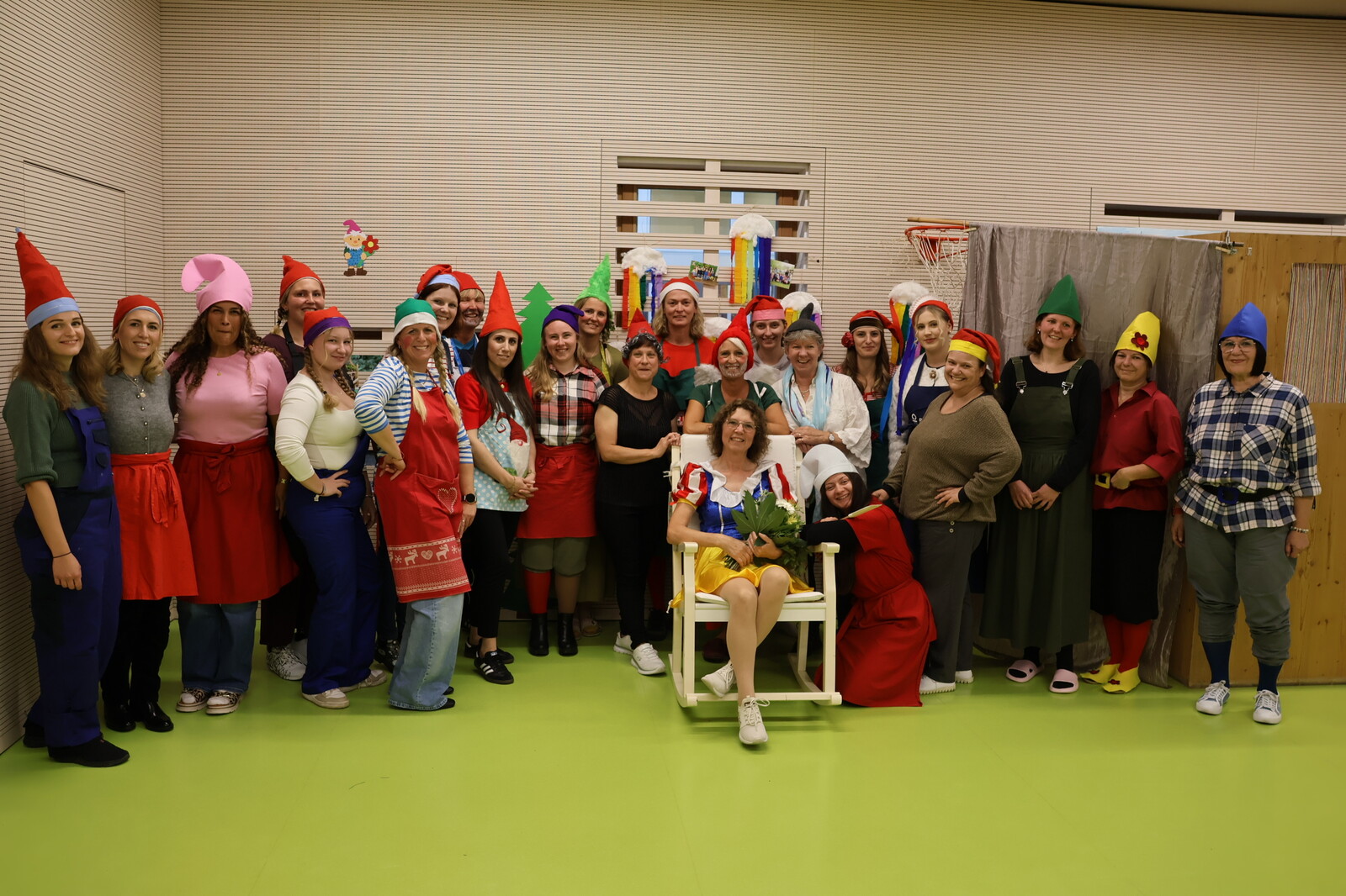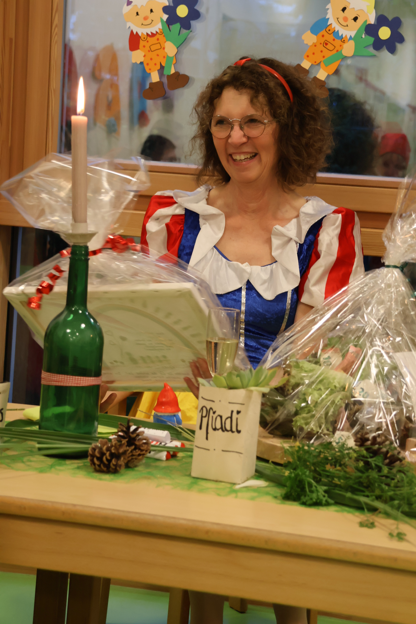 Aus diesem Grund überraschte das gesamte Kollegium ihre Moni, die für den Abend die Rolle des Schneewittchens übernahm: Alle Kolleginnen verkleideten sich als Zwerge und gestalteten einen wunderschönen Abschied, den Tränen und viel Lachen füllten. Das Team des Regenbogenlandes steckte in den letzten Wochen viel Mühe in die Vorbereitungen für dieses besondere Fest; sie dekorierten aufwendig, bastelten und übten intensiv.