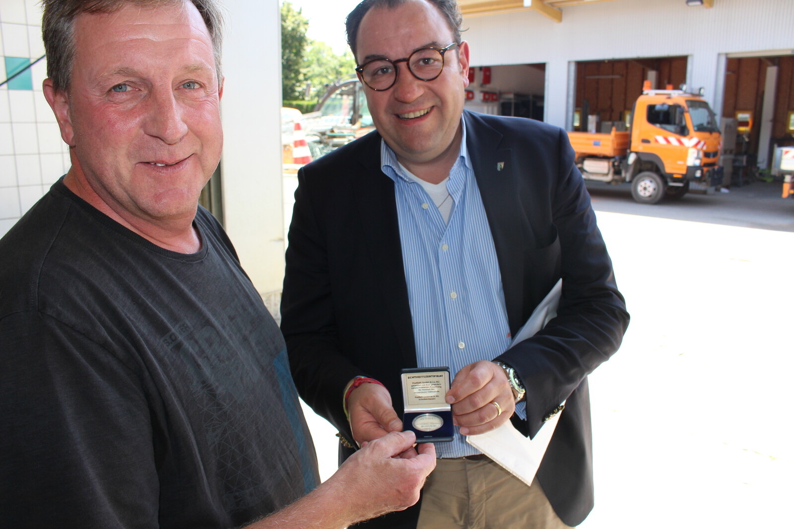 Die Stadt Abensberg hat Hermann Loibl für sein mittlerweile 25-jährige Tätigkeit im Bauhof der Stadt Abensberg herzlich gedankt. Bei einer kleinen Zusammenkunft Ende Juli haben Abensbergs 1. Bürgermeister Dr. Bernhard Resch, Hauptamtsleiter Andreas Müller, Personalratsvorsitzende Melanie Schlauderer, Stadtbaumeister Blerim Syla und Bauhof-Chef Andreas Ganslmayer die Leistungen des gelernten Schreiners gewürdigt.