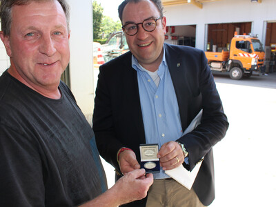 Er sei im Winterdienst dabei, am Aufbau für Abensbergs Festivitäten nicht wegzudenken und bei Veranstaltungen aller Art der Mann, der alles möglich macht. Den Parga-Steg hat er stets im Blick, und allen bekannt ist die Rundbank am Aventinusplatz – die hat er erschaffen. Dr. Resch dankte ihm für seinen wertvollen Einsatz und fügte hinzu, „Du bist beliebt und hochgeschätzt, und das hat seine Gründe.“ Loibl erhielt eine Dankesurkunde und eine Goldmünze. Herr Loibl ist gebürtiger Abensberger und Vater eines Sohnes.