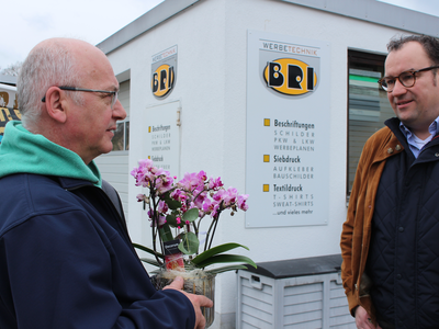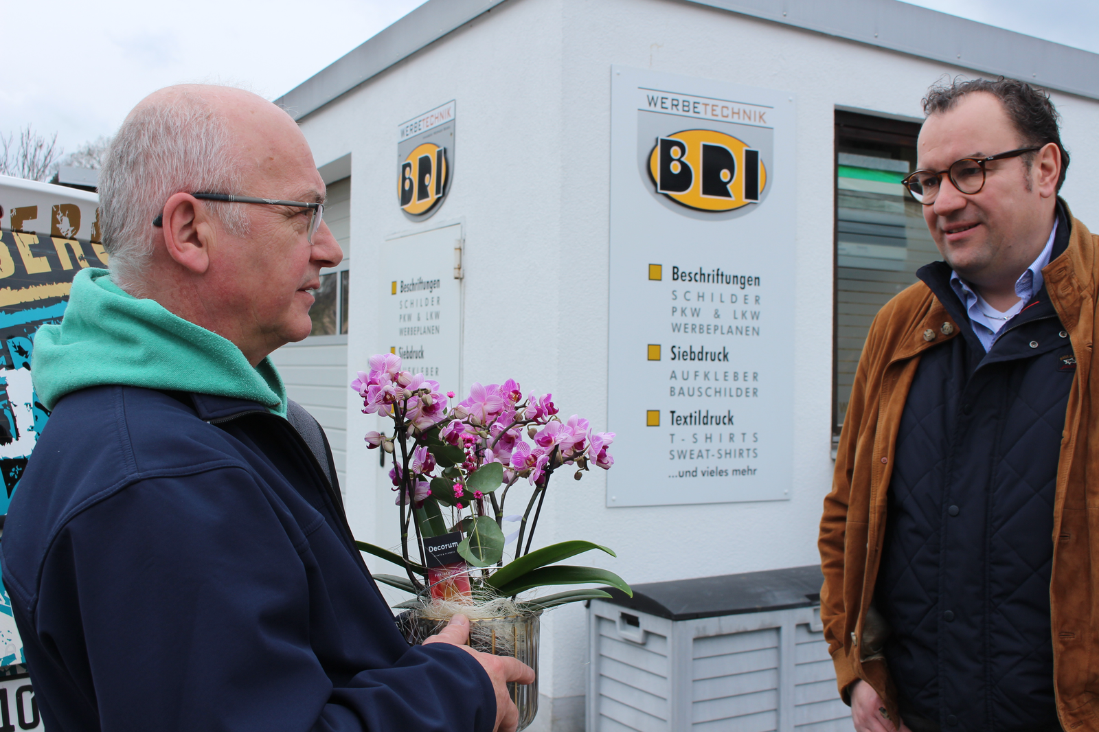 Die Stadt Abensberg hat, vertreten durch ihren 2. Bürgermeister Dr. Bernhard Resch, dem Unternehmer Werner Besel zum 25-jährigen Bestehen seines Werbestudios gratuliert. Die 1998 gegründete Firma „Bri Werbetechnik“ befindet sich Am Sommerkeller in Offenstetten, wo Besel Werbedienstleistungen unterschiedlichster Art anbietet: Große Banner, kleine Aufkleber, Textildrucke, LKW-Beklebungen – alles aus einer Hand. Besel legt dabei großen Wert auf eine individuelle Beratung, auch wenn es um kleinere Auflagen oder Aufträge geht. „Oft ist es erst im Gespräch mit der Kundschaft so, dass man heraus findet, was wirklich gebraucht wird“, sagt Besel. Seine Kunden kommen nahezu allesamt aus der Region. Sein handwerkliches Können findet sich in einer Dauerausstellung im Jüdischen Museum München oder auch im Stadtmuseum Abensberg, wo er zur Eröffnung die Beschriftungen in Siebdrucktechnik angebracht hat.