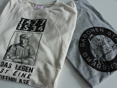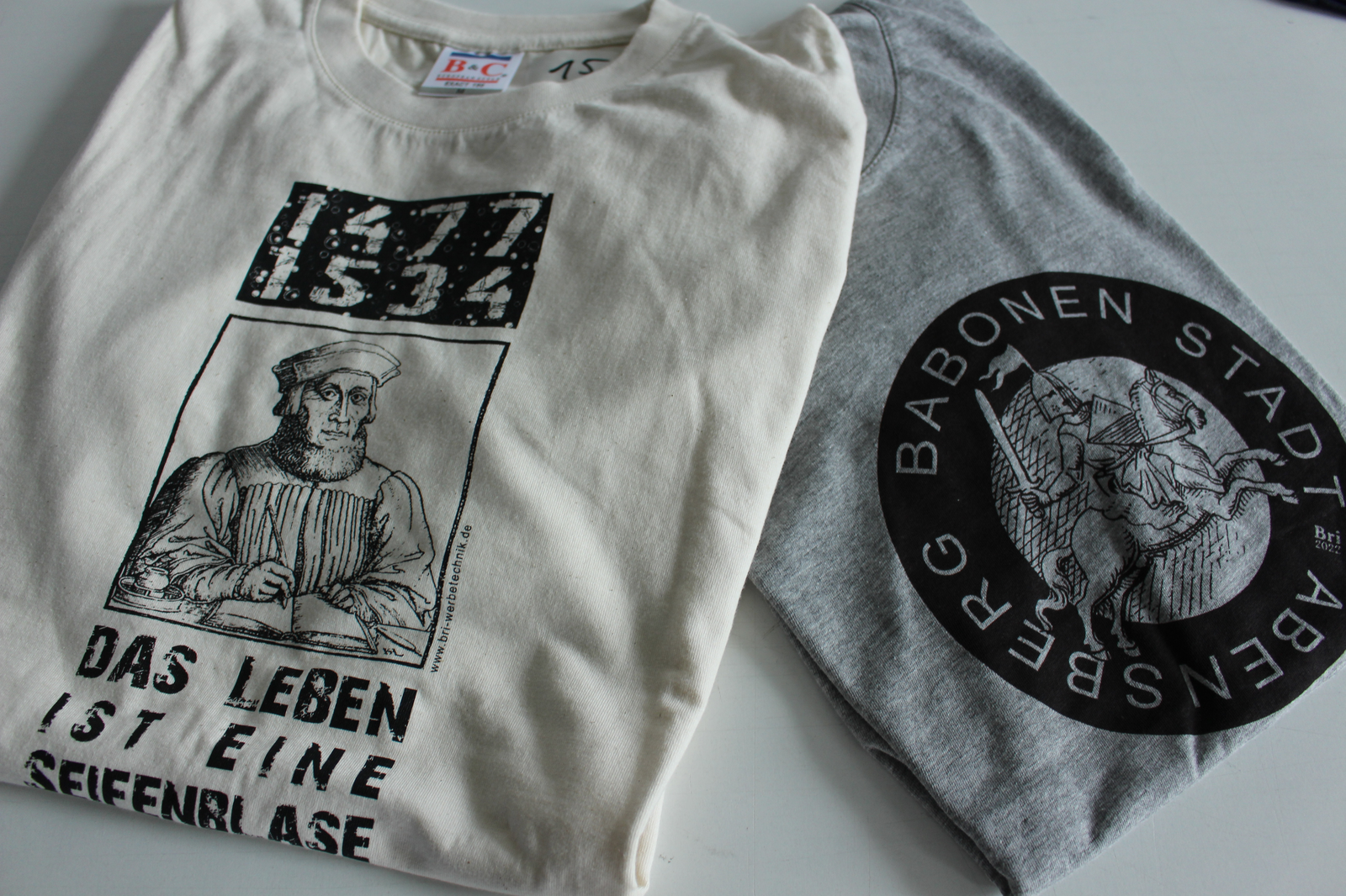 2. Bürgermeister Dr. Resch war beeindruckt von der Angebotspalette, aber auch von der Heimatverbundenheit, die Besel antreibt. So hat er 2021 in der Geschichte des Postwesens ein Datum gefunden, das mit der Stadt Abensberg verknüpft ist: Bei der Einführung besonderer Stempel wurde Abensberg ab 1850 buchstäblich zur Nummer 1 gestempelt. Von diesen ersten, so genannten Mühlradstempeln gab es insgesamt 402 mit alphabetisch den Postorten zugeordneten Nummern – von 1 für Abensberg bis 402 für Zwiesel. Über einen befreundeten Philatelist hat Besel damals zwei Briefmarken mit noch guter Stempelung erhalten und leicht variiert T Shirts mit diesem Motiv angeboten. Beim Kunstnachtmarkt 2022 war das ein voller Erfolg – trotz Regen. Dem Abensberger Stadtmuseum hat Besel eines der T Shirts und eine entsprechend gestempelte Briefmarke geschenkt.