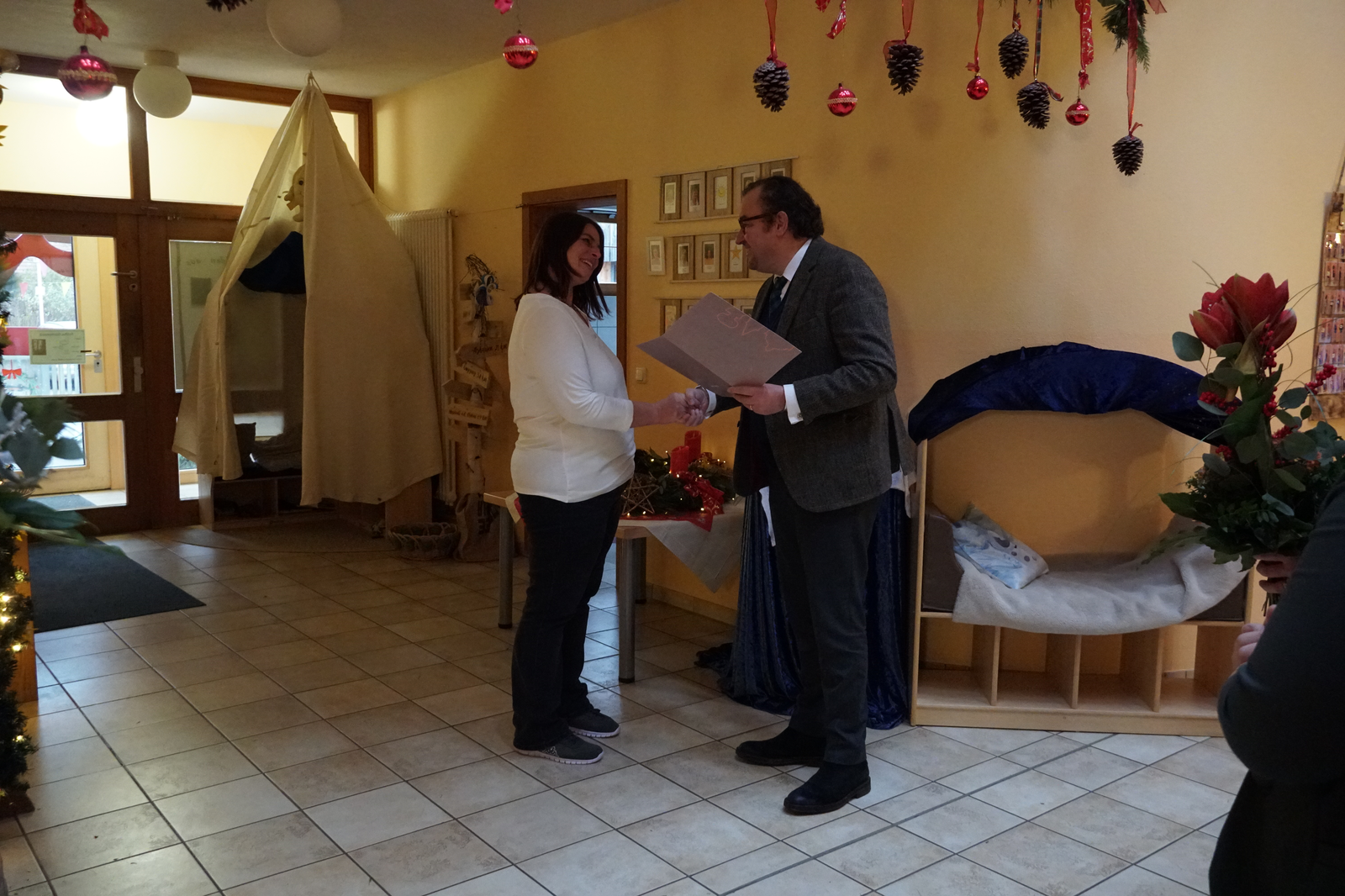Ebenfalls für 25 Jahre im öffentlichen Dienst geehrt wurde Alexandra Maier. Sie ist seit dem 01.10.2017 als Kinderpflegerin in Fridolins Kindernest in Sandharlanden beschäftigt. Davor war sie in Lappersdorf tätig. Auch bei ihr werden die Zeiten von Lappersdorf angerechnet.