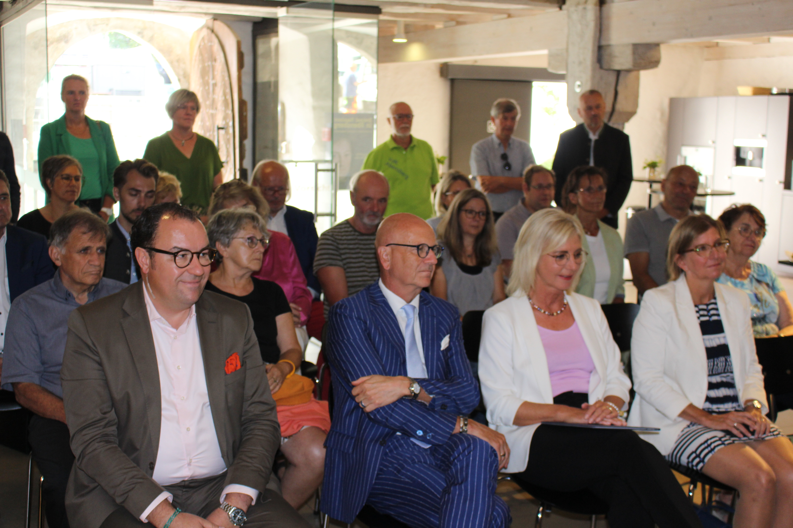 Dennoch haben die Verantwortlichen der vier neu ausgezeichneten Immobilien höhere Kosten nicht gescheut. Jakob Kroiß nahm das Signet für die Familie und den Kino-Neubau entgegen; er betonte, dass „echtes Miteinander“ so auch im Kino möglich sei. Andreas Poschenrieder, Stadtkämmerer und Geschäftsführer der Stadtentwicklungsgesellschaft, nahm das Signet für die Sanierung mit Neubau des Rathauses Abensberg entgegen. Er bedankte sich herzlich, gab aber zu bedenken, dass insbesondere die Anforderungen im Brandschutz im permanenten Clinch mit der Barrierefreiheit stünden. Für das „Haus in der Mauer“, ebenfalls eine städtische Immobilie, die barrierefrei gestaltet wurde, nahm Laura Harroider in Vertretung das Signet entgegen.