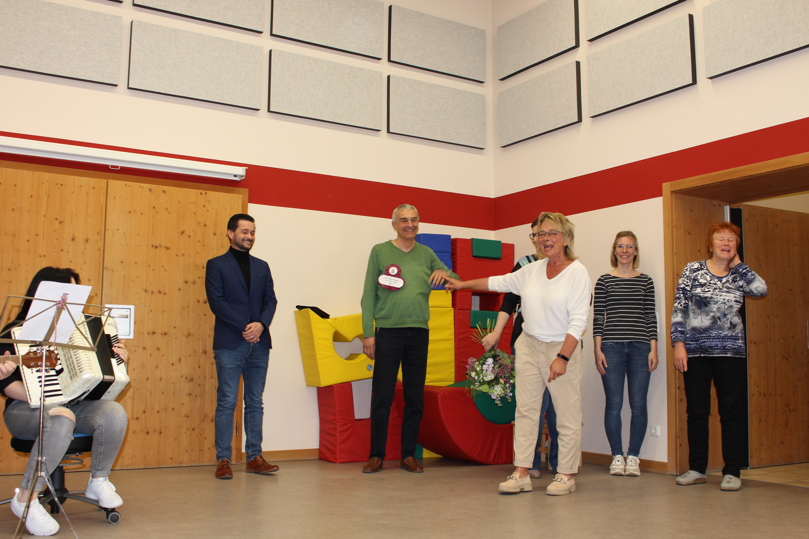 Im Kindergarten „Fridolins Kindernest“ in Sandharlanden wurde am Donnerstag (4. Mai 2023) Kinderpflegerin Angelika Zinner in den Ruhestand verabschiedet. Seitens der Stadt Abensberg dankte Hauptamtsleiter Andreas Müller herzlich für ihre geleistete Arbeit zum Wohle der Kinder und überreichte ihr einen Blumenstrauß. Personalleiter Franz Piendl sagte, sie sei „immer einsatzbereit“ gewesen und habe, wenn Not herrschte, stets ausgeholfen. Das sei nicht selbstverständlich. Kindergartenleiterin Birgit Firth dankte der Kollegin für ihre Zuverlässigkeit und ihren liebevollen Umgang mit den Kindern – und auch mit dem Team.