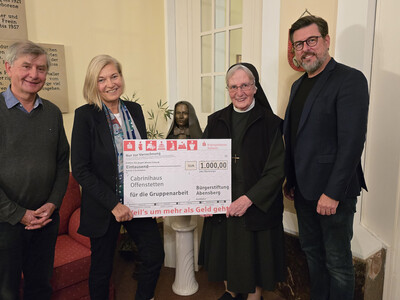 Die Bürgerstiftung unterstützt seit vielen Jahren soziale, ökologische, kulturelle und sportliche Projekte der Stadt Abensberg. Zuletzt wurde das Cabrinihaus in Offenstetten mit einer Spende von 1000,00 Euro bedacht.