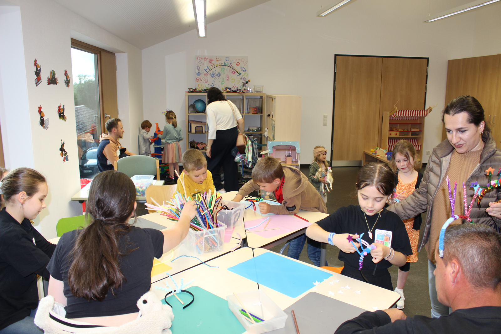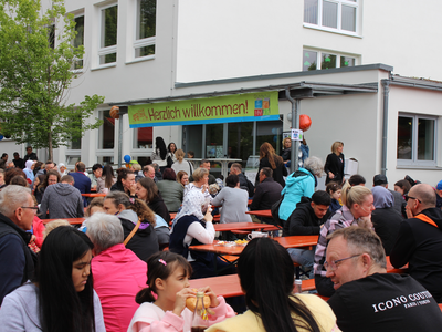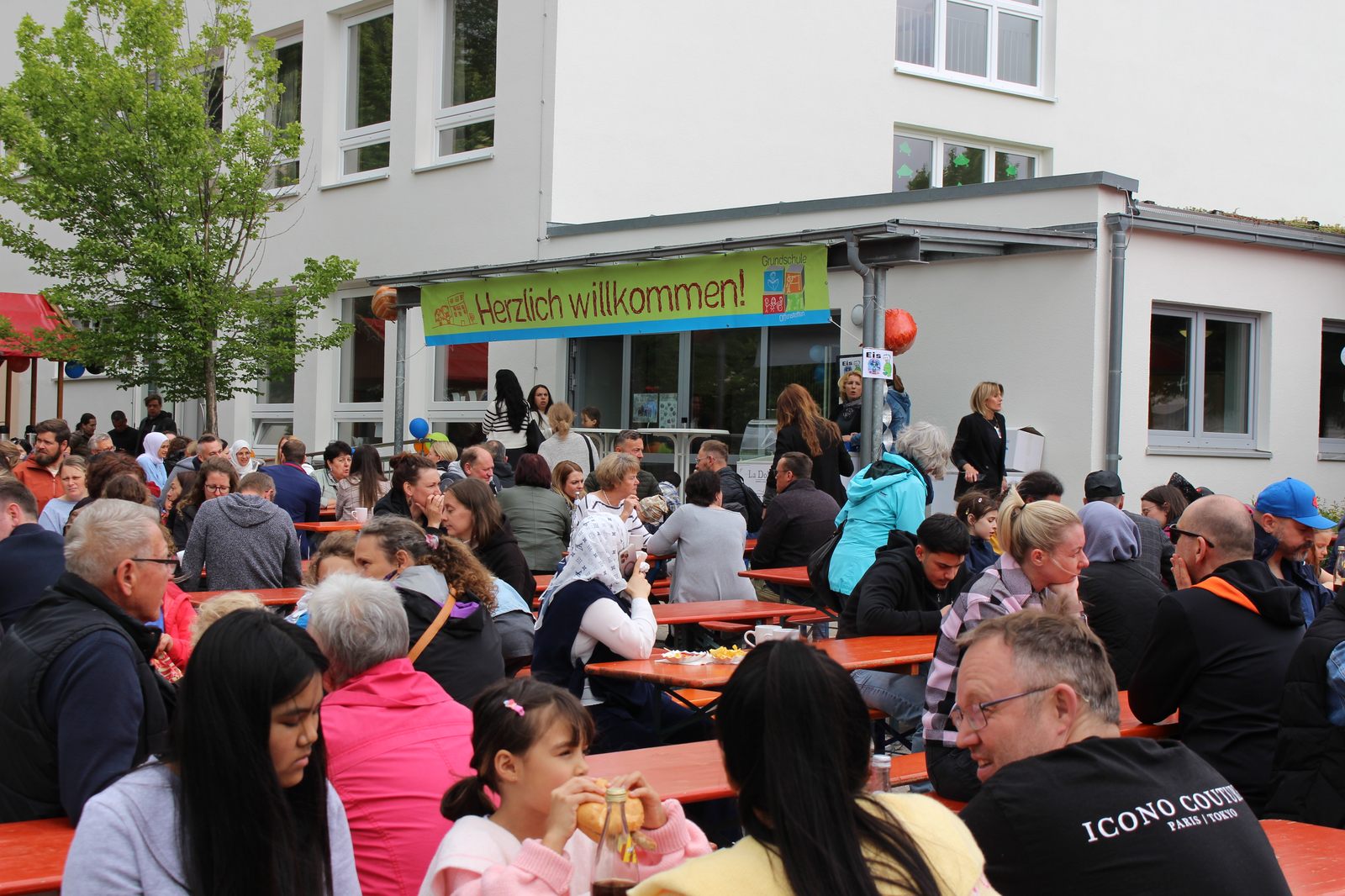 Nach dem Bühnenprogramm gab es in allen Klassenzimmern Stationen zum Informieren oder Mitmachen. In einem Klassenzimmer wurde man über die erste Mondlandung informiert, man konnte kosmische Haarreifen basteln, ein „Outer Space Bingo“ mitmachen und vieles mehr. Im Biergarten, organisiert vom Elternbeirat, gab es Getränke, Grillkäse, Wurst und Fleisch vom Grill, Käse und Brezen, Kaffee und Kuchen und einen Eisstand vom „La dolce vita“. Und die Schülerinnen und Schüler der „GSO Umwelt-Freaks“ boten Einkaufstaschen aus recyceltem Material an – angekündigt abschließend auf der Bühne, danach an einem Stand am Ausgang zum Biergarten, präsentiert mit einem überzeugenden Lächeln. Alles da – und auch Abensbergs 1. Bürgermeister Dr. Bernhard Resch war mit seiner Familie anwesend und gratulierte der Rektorin stellvertretend für alle zum „galaktischen“ Schulfest.