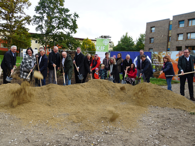 Nach intensiver Vorbereitung startet der Bau des inklusiven Kinderhauses Franziskus der Katholischen Jugendfürsorge (KJF) Regensburg auf dem Gelände des Berufsbildungswerkes in Abensberg. Der Vorsitzende der KJF, Domkapitular Michael Dreßel, KJF-Direktor Michael Eibl und der Gesamtleiter des Berufsbildungswerks Frank Baumgartner freuten sich über zahlreiche Gäste beim Spatenstich.