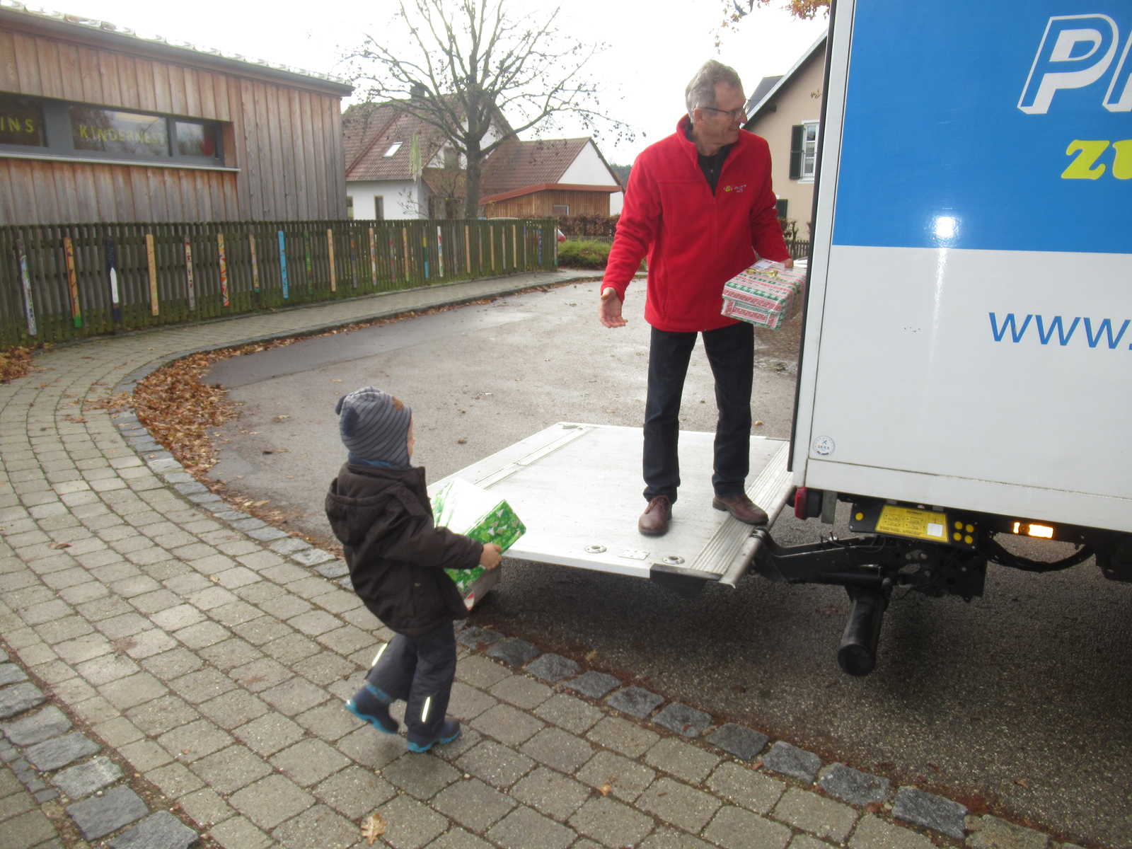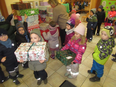 Millionen Kinder dieser Welt leben in großer Armut. Fridolins Kindernest beteiligt sich darum an der bayernweiten Aktion "Geschenk mit Herz" und sammelt Weihnachtspäckchen für Kinder in Not. Die Hilfsorganisation humedica e. V. (Kaufbeuren) bringt diese Päckchen zu Kindern aus acht Ländern in Südost- und Osteuropa. Auch in diesem Jahr sollen wieder zehntausende Päckchen in ganz Bayern gepackt werden.