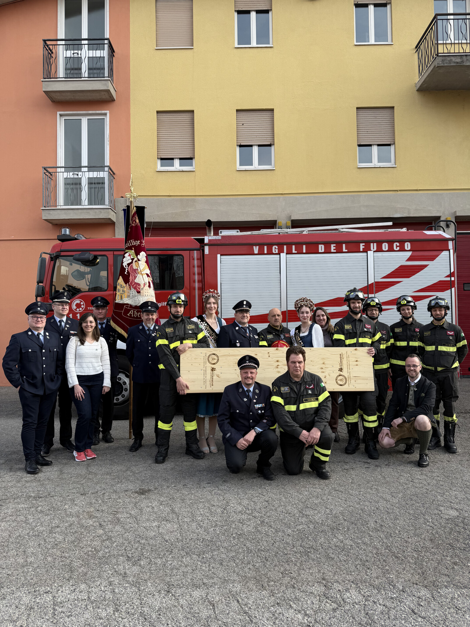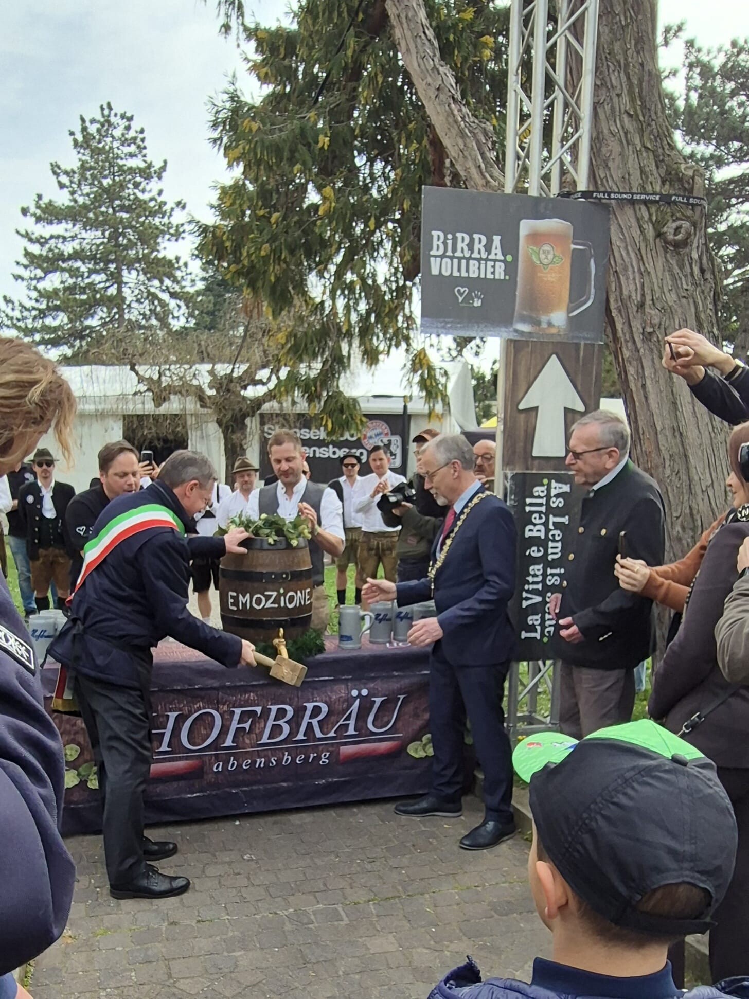 Zur Eröffnung der Fiera im Ippodromo, der historischen Pferderennbahn, war eine große Delegation aus Abensberg anwesend, 2. Bürgermeister Heinz Kroiss, Partnerschaftsreferent Peter Hübl, Niklas Neumeyer, Kulturreferent und Vorsitzender des Stadtverbandes, die Stadträte Manfred Rauscher und Hans Zirngibl sowie die Dirndlköniginnen Sonja Hoppe und Anja Mittermeier. Das Abensberger Bierzelt bewirtschafteten die Stopsler, außerdem nahm eine Abordnung der Abensberger Feuerwehr unter Führung von Michael Weber mit Fahne am Festzug teil. Wie in jedem Jahr waren die Aventinus Buam mit einer starken Abordnung dabei. Angeführt von der Stadtkapelle Lonigo zog man am Samstag bei angenehmem Frühlingswetter ins Messegelände. Beim Festgelände der Alpini, beim Bierzelt der Abensberger und bei verschiedenen Ständen wurden die Festbänder durchschnitten. Beim Bierzelt musizierte die Abensberger Stadtkapelle und Bürgermeister Pierluigi Giacomello zapfte gekonnt das erste Fass an.