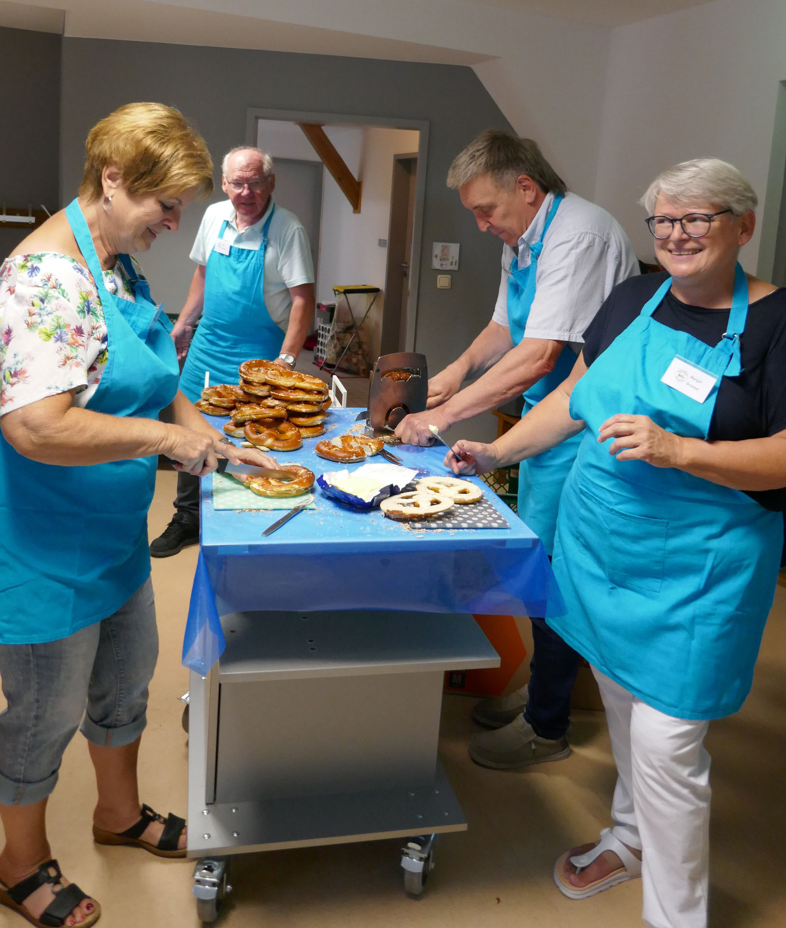 Im Foto oben die Ausgabe im Pausenraum. In der Galerie, Bild 1: Abensbergs 3. Bürgermeisterin Marion Huber-Schallner überbrachte eine Spende der Stadt an die Vorsitzende der Frühstücksfreunde, Ursula Prohaska. In der Galerie weitere Bilder von den Vorbereitungen und der Ausgabe des Frühstücks. Fotos: Verein.