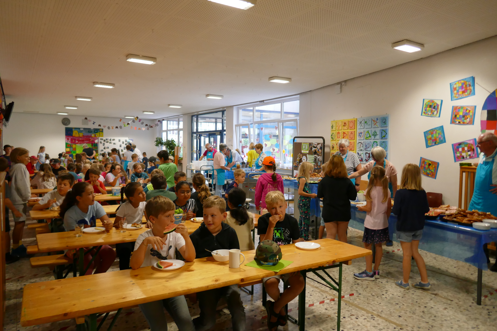 Ein 14-köpfiges Team des Vereins bereitete damals wie heute ab 5.45 Uhr das Frühstück für 258 Kinder vor. Bis heute kommen im Durchschnitt 230 Kinder. Möglich gemacht wird dies durch die engagierten Mitglieder und durch die große Spendenbereitschaft regionaler Firmen, Institutionen und Privatpersonen. „Ich möchte allen danken, die uns und damit den Kindern helfen“, so die Vorsitzende, Frau Prohaska. „Egal ob Großspenden, kleine Spenden oder die laufende Unterstützung – das alles ermöglicht unser Hilfsangebot.“