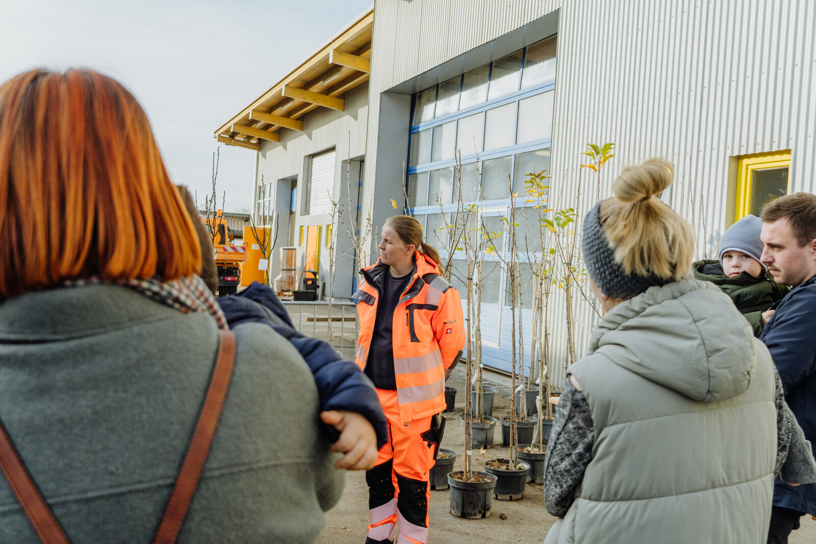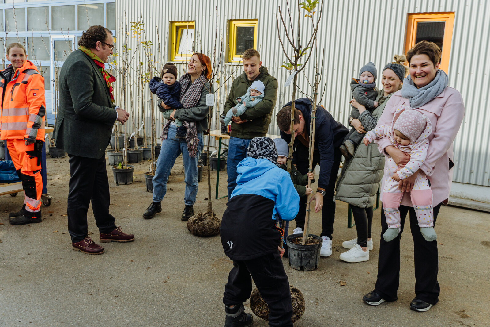 Am 13. November besuchten die frischgebackenen Eltern den Abensberger Bauhof und standen dort vor einer großen Auswahl an Obstbäumen: Ob Apfel, Birne, Kirsche oder Zwetschge – für jeden war etwas dabei. Landschaftsgärtnerin Jasmin Kaspar vom Bauhof unterstützte sie mit ihrer Expertise bei der Wahl. Sie half dabei, den passenden Baum für jeden Garten aus den zur Auswahl stehenden Bäumchen auszuwählen und gab Empfehlungen, ganz gleich, ob es um einen sonnigen Standort, feuchte Erde oder den Wunsch nach schnell tragenden Früchten ging.