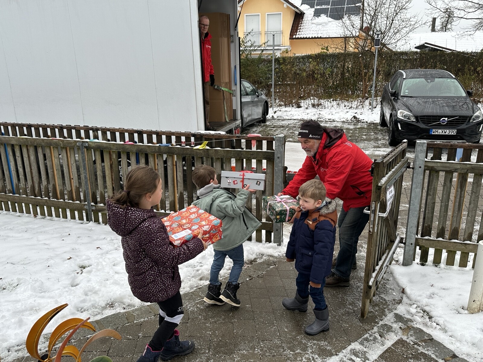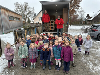 Voller Stolz verluden die Kinder ihre gesammelten Päckchen in die bereitstehenden LKWs. Die Hilfsorganisation "humedica" holte die Geschenke ab und transportierte sie nach Kaufbeuren, wo sie für den Weitertransport sortiert und vorbereitet werden. Von dort aus machen sich die Päckchen auf den Weg in die Ukraine, nach Albanien und nach Rumänien, um viele Kinderaugen zum Leuchten zu bringen.