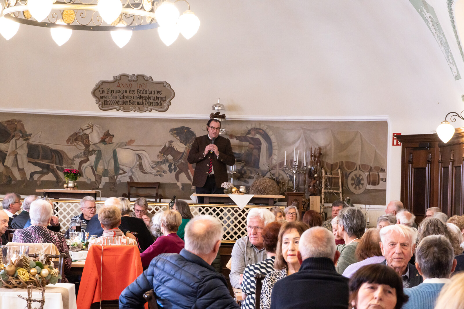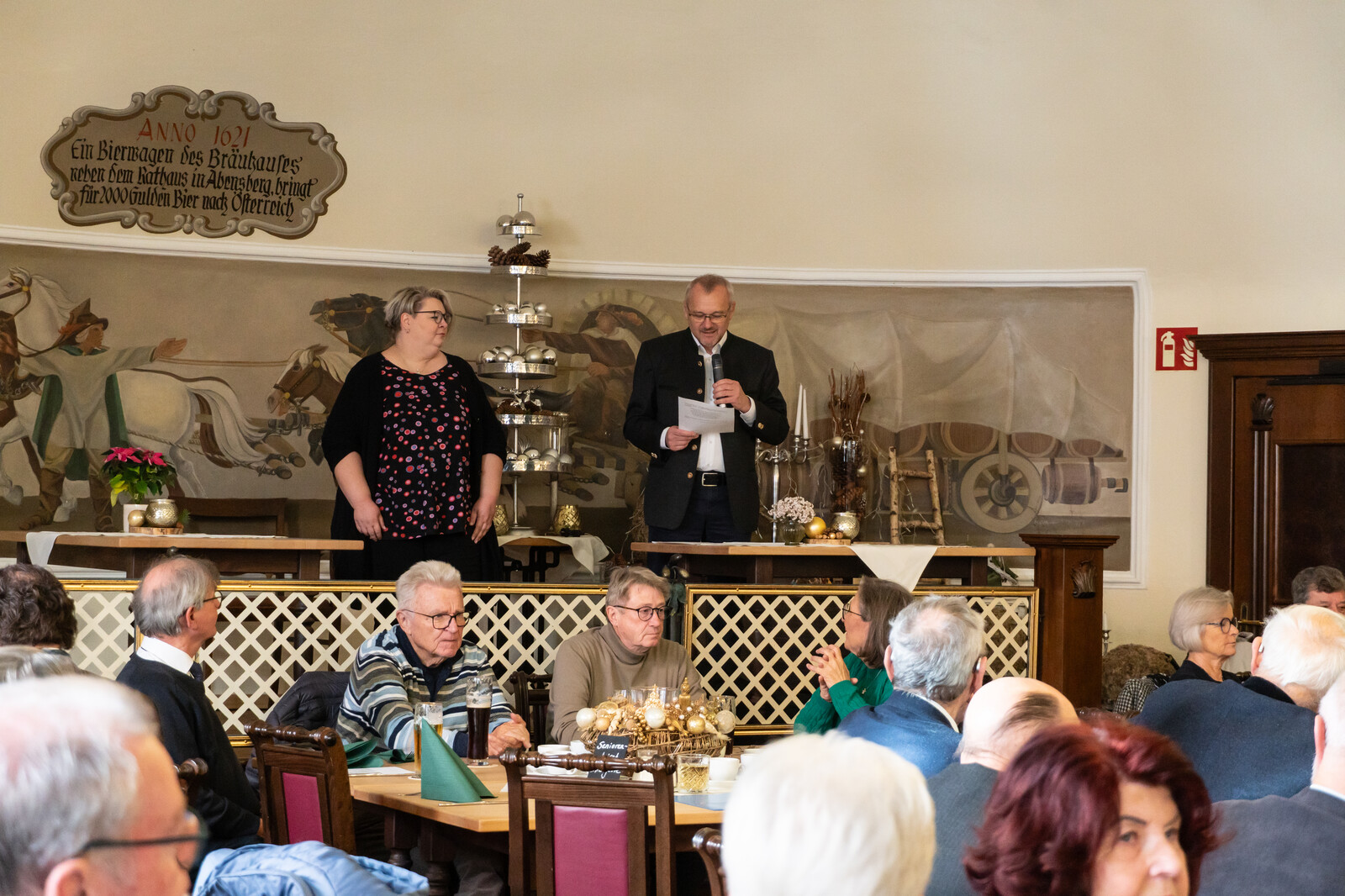 Für den feierlichen Rahmen sorgten neben dem Essen auch Pfarrerin Anne-Katrin Streeck und Pfarrer Georg Birner, die jeweils ein Tischgebet sprachen. Auch der Vorsitzende des Seniorenbeirats Albert Steber und Bürgermeister Dr. Bernhard Resch betonten die hohe Achtung und Anerkennung, die man den älteren Bürgerinnen und Bürgern der Stadt zollt.