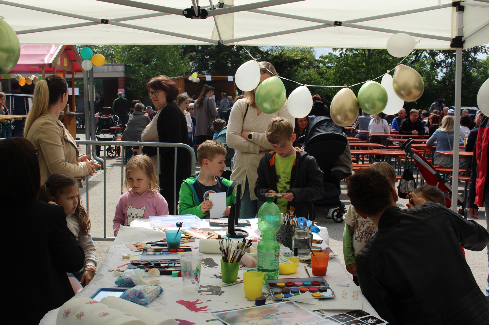 In vielen Klassenzimmern gab es Informations- und Mitmachstationen zu vielen Themen des afrikanischen Kontinents, und im gesamten Schulhaus konnten die Kinder mit ihren Eltern eine GSO-Safari unternehmen. Im unteren Pausenhof war ein Biergarten aufgebaut, der vom Elternbeirat der Schule betrieben wurde – der Erlös geht an die Schule. Rektorin Köppl dankte in ihrer Begrüßung herzlich für die Aktivitäten des Elternbeirats, der sich für das Schulfest unheimlich eingesetzt habe.