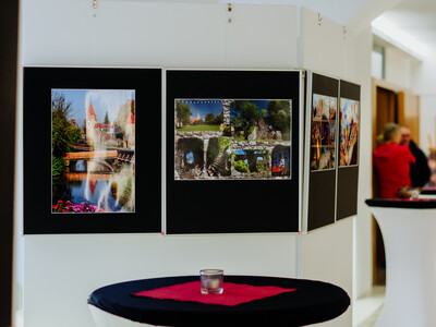 Nicht nur die Fotografien standen an diesem Abend im Mittelpunkt – sondern auch und vor allem der Mensch Günther Hauke. Das betonte auch die dritte Bürgermeisterin Marion Huber-Schallner bei ihrer Begrüßung: neben seinen Verdiensten als Mitglied der Photogilde beschrieb sie sein jahrzehntelanges Engagement für die Stadt. Dem schloss sich Kulturreferent Niklas Neumeyer an. Und der Fotograf selbst: War viel bescheidener, sprach von Wegbereitern und Freundschaften, die ihn als Mensch und Fotografen geprägt haben und bat um Spenden für den Freundeskreis Cabrini-Haus. Ganz nach deren Motto „Mit Freunden helfen“ schloss sich den Eröffnungsworten ein entspannter Abend mit lockeren und schönen Gesprächen an.