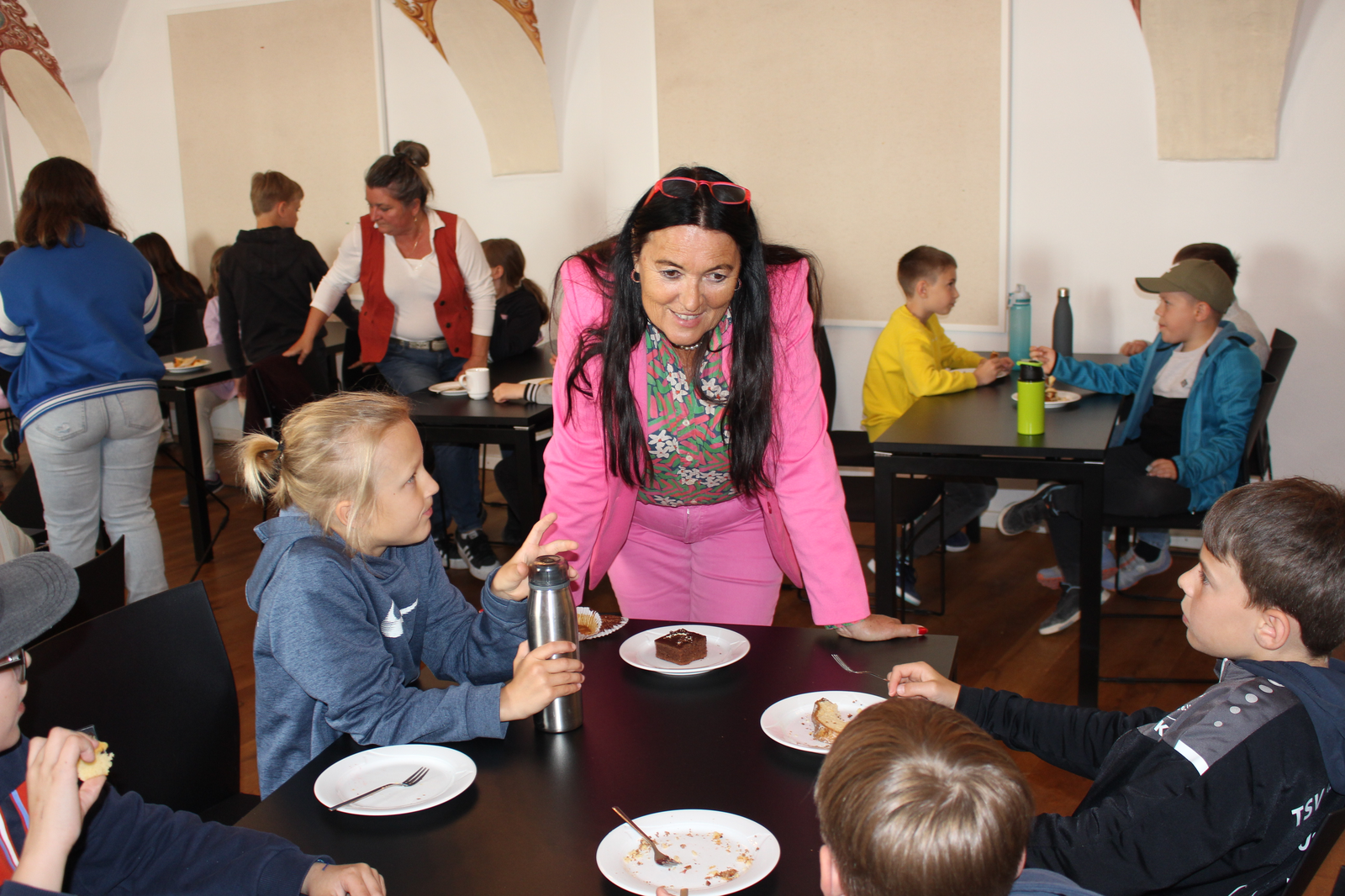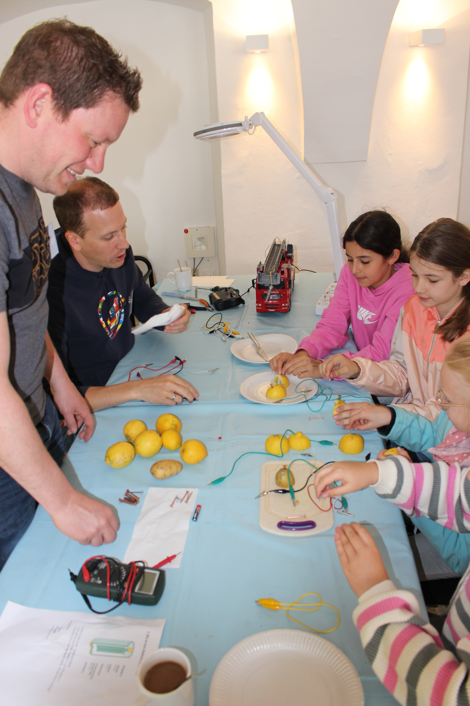 Die jungen Gäste kamen in zwei Schichten zu je rund 45 Kindern. Am Montagmorgen starteten die Reparatur-Café-Leute mit dem Aufbau im Aventinum, am Dienstag ging es um 7.45 Uhr weiter, damit die Kinder ab 8.15 Uhr an den vier Stationen beschäftigt waren. Zu den vier Stationen gesellte sich eine fünfte Station, auch die wurde gerne gewählt: die Kuchen- und Muffin-Theke mit Tina Stiegler und Lotte Rieger. Die beiden Damen mussten höllisch aufpassen, wer bereits wie oft welchen Kuchen verlangte, damit genügend für alle übrig blieb. Gebacken hatten Eltern der Viertklässler und auch deren Lehrerinnen und Lehrer. Vor Ort waren Marina Müller, Sebastian Reichhart, Brigitte Wallner-Kuttler und Teresa Welker sowie zwei Schulbegleiterinnen.
