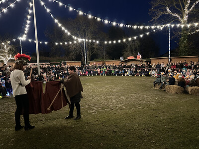 Ein Höhepunkt war das Martinsspiel, das von den Mitarbeitern des Kindergartens aufgeführt wurde. Die Vorschulkinder sorgten für die instrumentale Begleitung des Spiels. Auch die Gänse, die St. Martin im Gänsestall verraten haben, wurden von einigen Kindern gespielt.