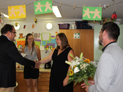 Frau Ferg war bereits im ersten Ausbildungsjahr als Vorpraktikantin im „Lummerland“ tätig, auch in der Hauptausbildung. Im fünften Jahr folgte dann das Anerkennungsjahr im Berufspraktikum, ebenfalls im „Lummerland“. Mit dem Abschluss dieses Jahres hat sie die staatliche Anerkennung als „Bachelor Professional im Sozialwesen“ verliehen bekommen, was die Ausbildung zur Kinderpflegerin und zur Erzieherin umfasst und den Hochschulzugang ermöglicht. Bürgermeister Dr. Resch freute sich über ihre Leistung, die „unseren Kindern zu Gute kommt“. Er überreichte ihr einen Strauß Blumen; Hauptamtsleiter Andreas Müller bedankte sich ebenfalls sehr und hatte das Dankesschreiben der Stadt Abensberg dabei. Frau Koller-Ferch schloss sich den Glückwünschen an.