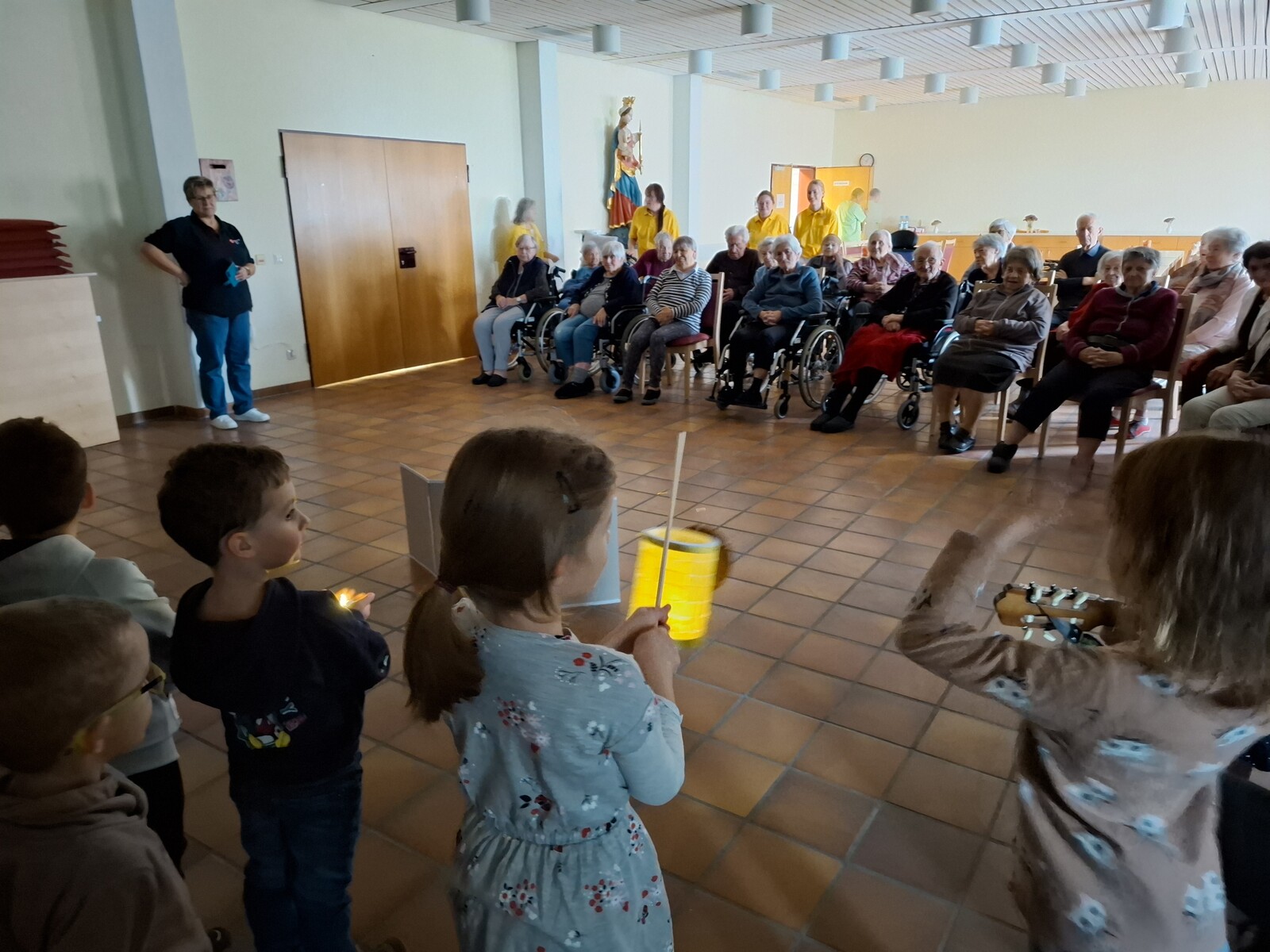 Der Kindergarten Lummerland gestaltete gestern im BRK Seniorenheim in Abensberg eine gelungene Feier zum Martinstag. Eine Gruppe von Kindergartenkindern besuchte die Bewohnerinnen und Bewohner und präsentierte ein schönes Programm. Die Kinder trugen Martinslieder, eine Geschichte und das traditionelle Martinsspiel vor.