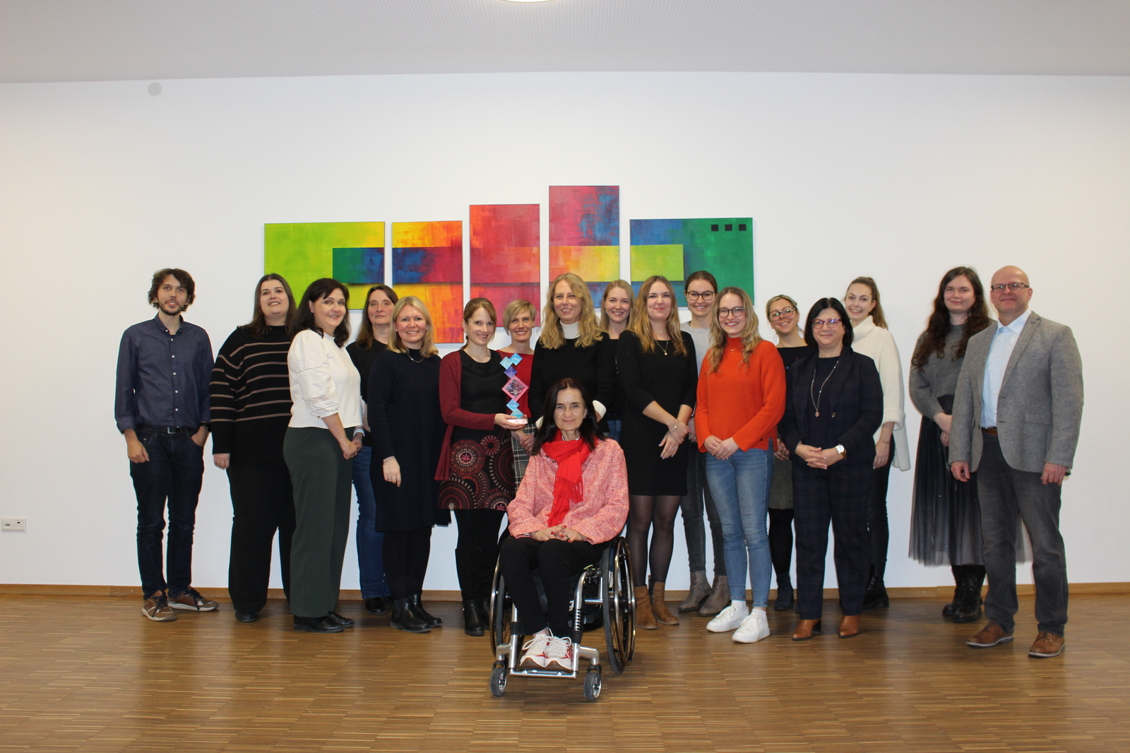 In der Galerie ein Bild mit nahezu allen Beteiligten - von links: Sebastian Köppl, Diana Metz, Alison King, Katrin Bopp, Sonja Senst, Verena Ochmann, Sylvia Rengstl, Liane Köppl, Valerie Ullrich, Stefanie Seidel, Laura Heid, Romy Mulitze, Martina Sommerer, Brigitte Schönhofer-Bohrer, Julia Siller, Joséphine Stüllenberg, Michael Kugler und vorne 3. Bürgermeisterin Marion Huber-Schallner.