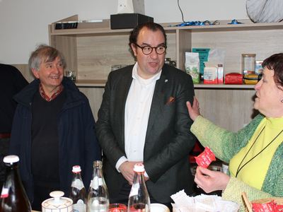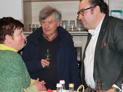 Zu den Gästen gehörten auch 2. Bürgermeister und Seniorenbeauftragter Dr. Heinz Kroiss und später auch 1. Bürgermeister Dr. Bernard Resch. Auch vhs-Leiterin Katrin Koller-Ferch feierte mit; sie ist städtischerseits zuständig für den "TreffPunkt". Zu jedem Fest gehören Essen und Trinken, Musik und Tanz, Schmuck und die „Rede“, damit man weiß, warum denn eigentlich gefeiert wird. Albert Steber ließ das erste Jahr des Treffs Revue passieren. Der Besuch schwankte von sehr überschaubar bis restlos gefüllt. Doch eines war konstant: die Qualität. So waren die Einführung in den Fahrtkartenautomat durch Agilis, der Vortrag über Demenzvorsorge und die Luftbilder von Dr. Stefan Satzl die „Renner“. Das Gegenteil der „Renner“ waren dann die „Mauerblümchen“, die sich allerdings noch entwickeln können.
