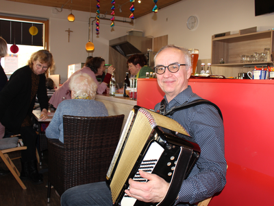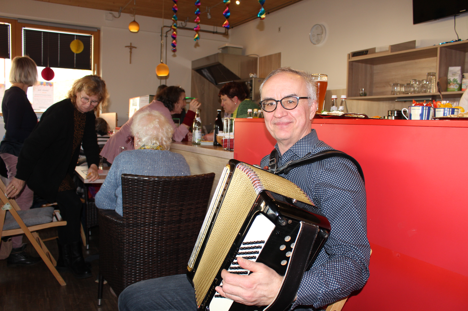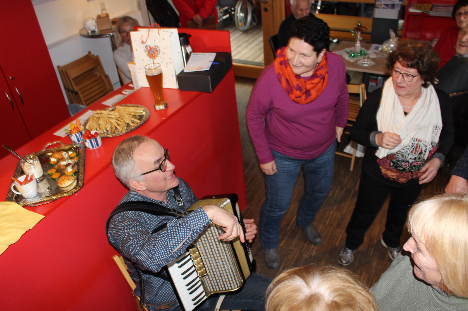 Viele „Künstler“ gaben auch ihr Stelldichein: Edith Schieck als Autorin; Walter Adam, der übrigens an diesem Tag seinen 18., nein 81. Geburtstag feierte, als Musikkünstler, Georg Fuchs mit dem Rezitieren von Gedichten und schließlich Dr. Stefan Satzl als Flugkünstler. Dem Anspruch ein Generationentreff zu sein wurde durch verschiedene Angebote entsprochen. Schüler und Schülerinnen der Realschule Abensberg waren zweimal im Treff und erklärten den Umgang mit dem Handy. Schülerinnen und Schüler der Mittelschule Abensberg hatten einmal zu „Spiel, Kuchen, Spaß“ eingeladen und im Advent zu Geschichten und weihnachtlichem Gebäck. Dieser Rückblick wurde auch immer wieder aufgelockert mit Fragen, die eine gewisse Spritzigkeit vermittelten; so z.B. Das gesunde Essen wurde durch verschiedene Veranstaltungen vertieft. Was fehlt noch? … Wie braut man ein gesundes Bier? Das wäre vielleicht ein Impuls für das zukünftige Programm. Flankiert wird das Programm im Kiosk auch durch zwei weitere Angebote: Äußerst beliebt und bestens besucht ist der Singkreis um Emi Richter. Ebenso gibt es den Spielekreis mit Doris Berdzentis. Zum Schluss der „Rede“ bedankte sich Albert Steber beim Team Generationentreff, ohne dem hier nichts passieren würde. Sie leisten wirklich sehr viel.
