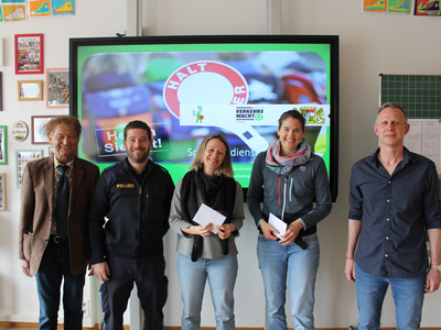 Im Bild oben ein Probe-Einsatz in der Römerstraße. In der Galerie im ersten Bild Polizeihauptmeister Andreas Odvody, Studienrat Jürgen Deinlein, Kinga Krauter, Matthias Kernstock und Rektor Wolfgang Brey, vorne 3. Bürgermeisterin Marion Huber-Schallner. Im zweiten Bild der Galerie von links Rektor Wolfgang Brey, Polizeihauptmeister Andreas Odvody, Susanne Treitinger, Stefanie Ramsauer, Studienrat Jürgen Deinlein. Im dritten Bild der Galerie der Verkehrserzieher des Landkreises im Gespräch, im vierten Bild im "Unterricht mit Jürgen Deinlein. Nochmals das Hauptmotiv. Fotos: Ingo Knott.