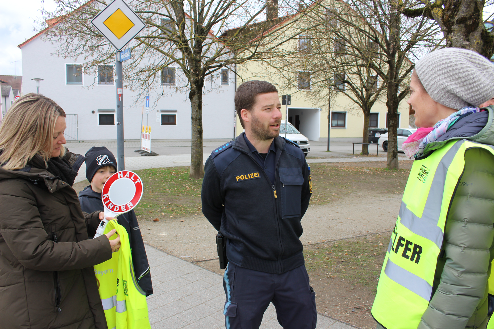 Rektor Brey war deshalb glücklich, dass sich am selben Tag drei weitere Freiwillige von Polizeihauptmeister Andreas Odvody, Verkehrserzieher im Landkreis Kelheim, schulen und auf die wichtige Aufgabe vorbereiten ließen: Kinga Krauter aus Abensberg hatte sich dazu angemeldet; ihr Sohn geht in die 4. Klasse der Aventinus Grundschule und da will sie mithelfen. Auch Matthias Kernstock aus Abensberg war mit dabei; sein Sohn besucht die erste Klasse der Grundschule. „Ich wollte etwas Gutes tun“, ist seine schlichte Begründung. Abensbergs 3. Bürgermeisterin Marion Huber-Schallner hat sich ebenfalls angemeldet, um hier morgens für mehr Sicherheit zu sorgen. Als Rollstuhlfahrerin hat sie in letzter Zeit einige denkwürdige - und sehr gefährliche - Begegnungen im Straßenbereich erlebt. Sie wird einspringen, wenn morgens jemand ausfällt.