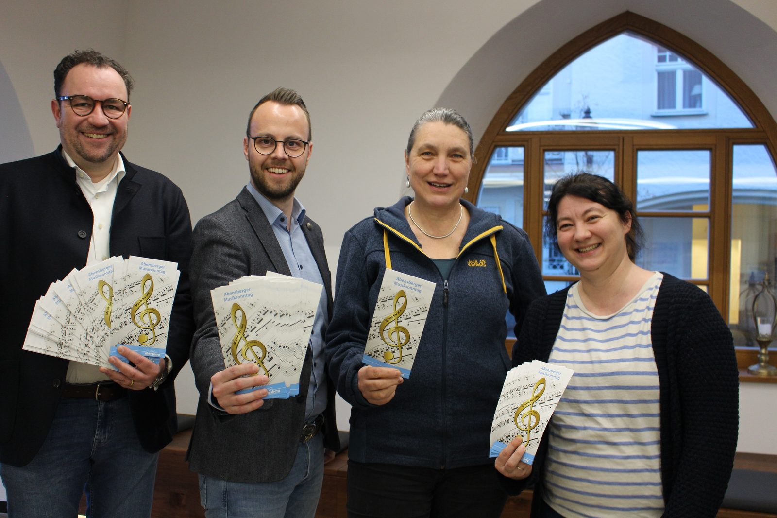 Im Foto von links 1. Bürgermeister Dr. Bernhard Resch, Kulturreferent Niklas Neumeyer, Katharina Keglmaier von der Musikwerkstatt und Melanie Schlauderer von der Stadt Abensberg mit dem neuen Programm. Der Flyer liegt an vielen Stellen in Abensberg und Umgebung aus.