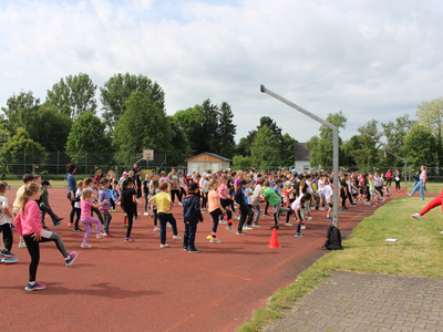 Lauf dich fit! - Unter diesem Motto veranstaltet der Bayerische Leichtathletik-Verband (BLV) seit 2015 ein jährliches Laufprojekt für Kinder und Jugendliche von der Grundschule bis zu den 10. Klassen in ganz Bayern. Ziel ist es, dass die Kinder und Jugendlichen am Ende des Projektes die Fähigkeit erlangt haben, an einer Lauf-Challenge der Schule 15, 30 oder sogar 45 Minuten ohne Gehpausen ausdauernd laufen zu können. Die Aventinus Grundschule Abensberg war heuer mit dabei und zur abschließenden Lauf-Challenge am Dienstag, 27. Mai, waren 423 Grundschüler - darunter auch ein Junge im Rollstuhl! - am Roten Platz und drehten begeistert ihre Runden.