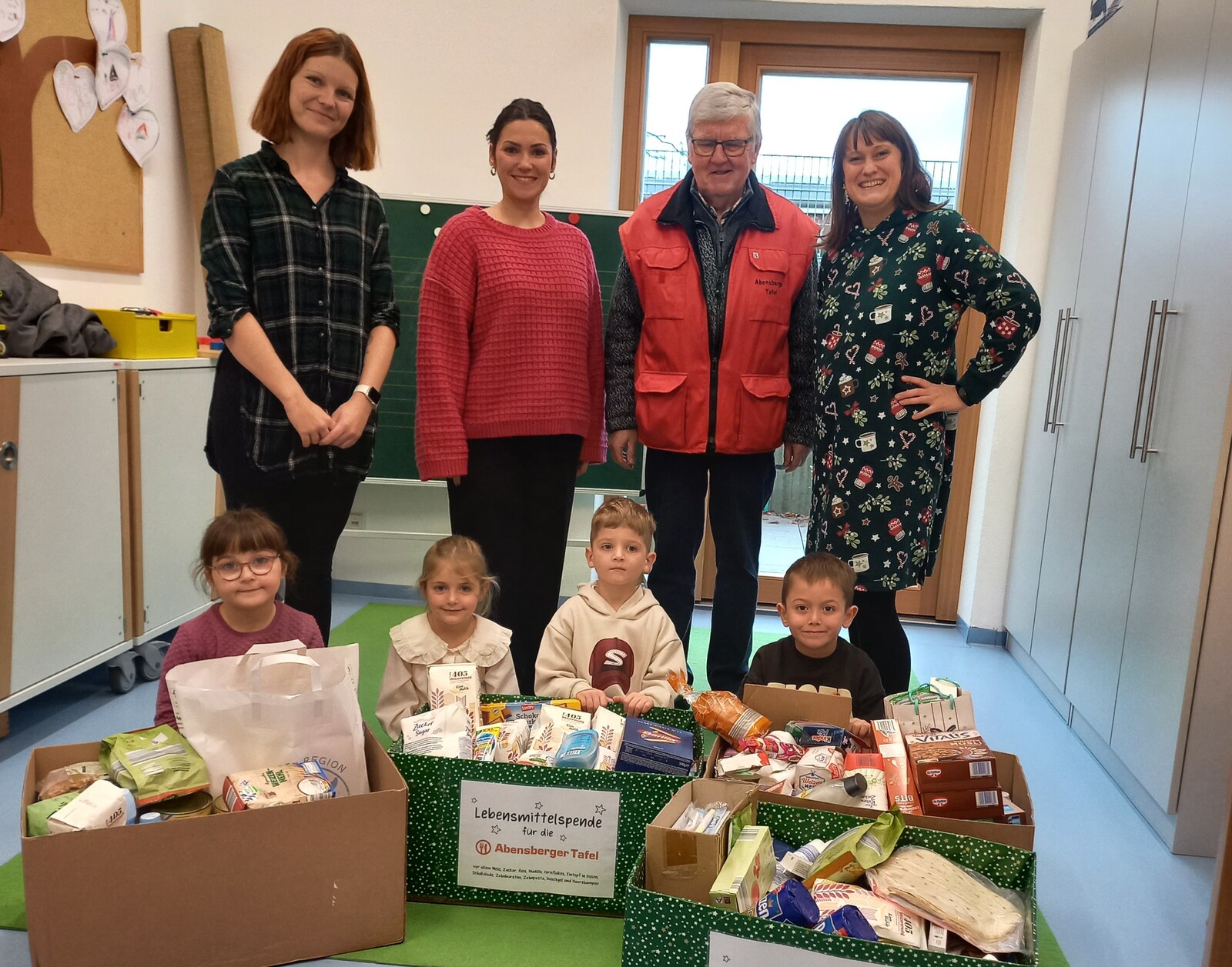 Auch in diesem Jahr hat der Elternbeirat des Kindergarten Regenbogenland wieder eine Spendenaktion für die Tafel Abensberg organisiert. Dabei sammelten die Eltern zahlreiche Lebensmittel und Hygieneartikel. Am Montag, den 08.12.2025, wurden die Spenden von der Tafel Abensberg abgeholt.
