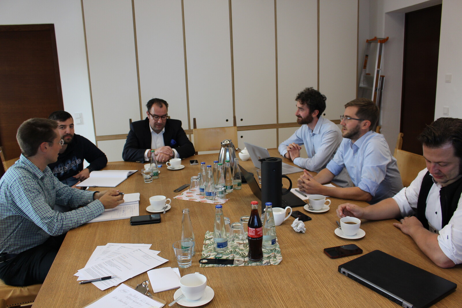 Im Bild oben Dr. Thomas Plankenbühler und Dr. Sebastian Kolb von der Planungsfirma. In der Galerie eine Arbeitssitzung mit 1. Bürgermeister Dr. Bernhard Resch, Stadtbaumeister Blerim Syla, Stadtwerkeleiter Dr. Rainer Reschmeier und den prosio-Fachleuten.