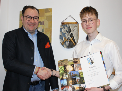 Gemeinsam mit seinen Eltern war der Schüler im Februar bei einem Treff im Rathaus, um aus den Händen von Dr. Resch die Urkunde überreicht zu bekommen. Damit verknüpft sind 600 Euro, die Stocker bereits für die nächste Studienfahrt – es geht in die Provence – verwenden wird. „Das wird schön“´, so Stocker, der sich herzlich bedankte. Der Preis kommt nicht von ungefähr – Stocker lernt Latein, Englisch und Französisch im Gymnasium, daheim übt er noch italienisch. „Das ist beachtlich und wird Dir viele Türen öffnen“, so Dr. Resch angesichts der Sprachbegabung von Stocker. Die Stadt Abensberg wünscht eine gute Reise und schöne Eindrücke in der Provence, unweit von St. Gilles, seit 2016 Partnerstadt von Abensberg. (Saint Gilles, der Heilige Ägidius, ist der Patron des Festes Sankt Gilg am Moos, dem Gillamoos; Anmerkung.)