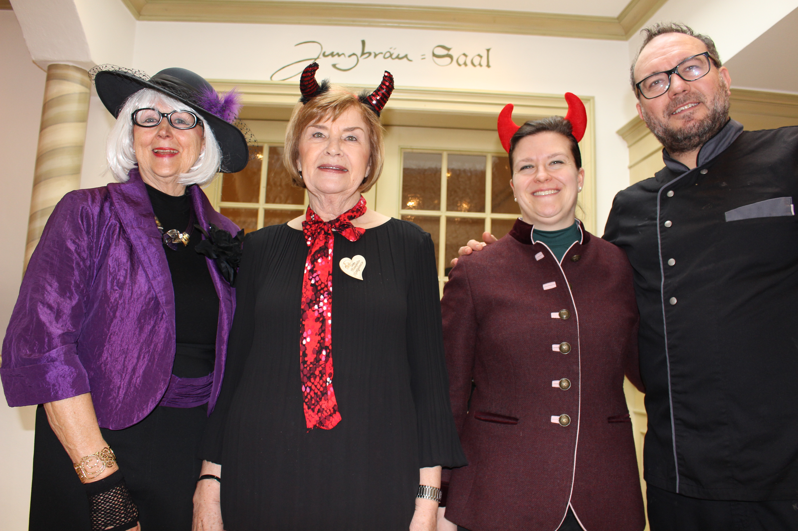 Im Bild oben von links nach rechts Maria Köglmeier mit einer tanzbegeisterten Freundin sowie Amelie und Oliver Anger vom Hotel und Gasthof Jungbräu. (Foto: Ingo Knott)