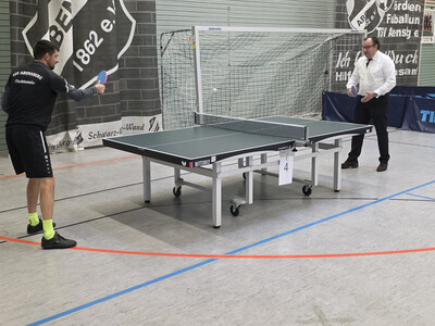 Abensbergs Bürgermeister Dr. Bernhard Resch freute sich als Schirmherr, dass die Aventinusstadt erneut Gastgeber für die Tischtennis-Cracks aus dem Oberpfälzer Süden und dem Landkreis Kelheim sein durfte. „Abensberg ist Sportstadt. Das zeigt sich nicht nur in sportlichen Erfolgen, sondern auch darin, dass unsere Ehrenamtlichen Sportevents können, wollen und hervorragend managen.“ Zur Eröffnung der zweitägigen Veranstaltung rief er seine zu Jugendzeiten erworbenen Tischtenniskünste in Erinnerung und ließ es sich nicht nehmen, selbst den Tischtennisschläger zu schwingen und eine kleine sportliche Einlage mit seinem Namensvetter Michael Resch, dem Tischtennisabteilungsleiter des TSV Abensberg, aufs Parkett zu zaubern. Dieser wiederum kündigte an, dass man auch 2026 das Turnier wieder in die Abensberger Mehrzweckhalle lotsen wolle.