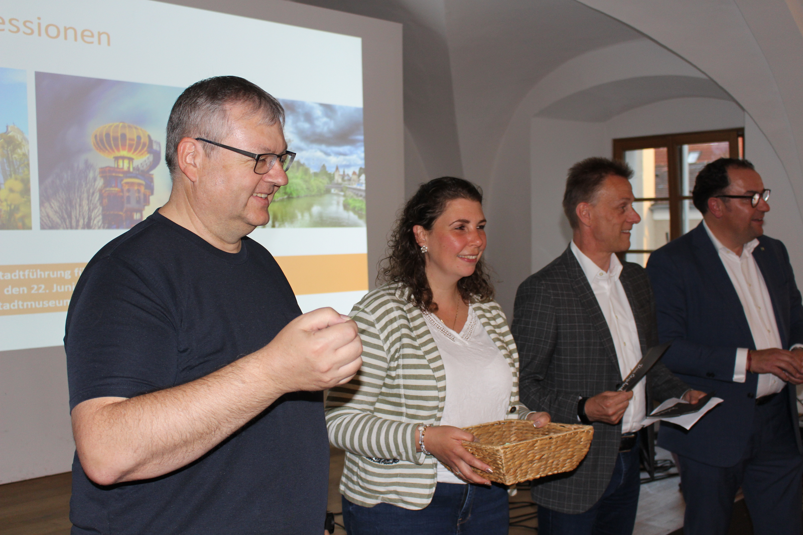 Der Kommandant der Freiwilligen Feuerwehr, Konrad Bauer, lud die Anwesenden zum Mitmachen ein und wies darauf hin, dass die Kinderfeuerwehr, das Aventinusflämmchen, ab sechs bis zwölf Jahre geeignet ist. „Nehmen Sie Kontakt zu uns auf, wir sind offen wie alle Abensberger Vereine!“ Beweis dafür sei er selbst: „Normalerweise braucht man als Feuerwehrkommandant vor Ort einen Stammbaum bis ins Mittelalter.“ Er selbst ist, wie es hier heißt, „zuagroast“. Der Beauftragte für Städtepartnerschaften, Peter Hübl, stellte die Partnerstädte von Abensberg vor (Parga, Lonigo und St. Gilles) und bot in seiner Eigenschaft als Gästeführer eine kostenlose Stadtführung an - die findet am Samstag, 22. Juni, ab 14 Uhr (Treffpunkt ist der Herzogskasten) statt. Walter Tuscher, der Vorsitzende der Marketinggesellschaft in Abensberg, kurz MiA, stellte die Aktionen der Gewerbetreibenden vor und lud dazu ein, sich zu engagieren. Unter allen anwesenden Neu-Abensbergern verloste er anschließend zehn Einkaufsgutscheine in der örtlichen „Babos“-Währung.