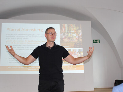 Nach der mitreißenden gesanglichen Begrüßung dankte Abensbergs 1. Bürgermeister Dr. Resch den Damen von „Stimmix“ und ihrem Chorleiter Reinhold Rückerl. Bis zum Ende der Veranstaltung gab es immer wieder Kostproben zu hören. Den Reigen der Vorstellungen eröffnete Pfarrvikar Florian Heisterkamp mit einem Überblick der Angebote der katholischen Pfarrei, mit dabei die monatliche Kinderkirche und der Familiengottesdienst. Auch das Eine Welt-Forum, die Kolpingsfamilie, Frauenbund, KLJB und den Kirchenchor erwähnte er. Aus der Pfarrei Offenstetten war Pfarrer Wolfgang Schillinger anwesend; auch in Offenstetten gibt es zahlreiche Angebote für viele Interessen (darunter Eltern-Kind-Gruppen, Singkäferl, Kirchenchor, Pfadfinder, Frauenbund, KAB). Die evangelische Pfarrerin Anne-Katrin Streeck stellte vergnügt angesichts landesweiter katholischer Dominanz ihre „kleine, beschauliche Diasporagemeinde“ vor, die sich bis Neustadt/Donau erstreckt. „Lebendig im Glauben, fröhlich in der Vielfalt“ ist ihr Motto; monatliche Kindergottesdienste, das Plaudercafé, die Aktion „Einfach heiraten“ und vieles mehr gehören dazu. Bis zum Ende des Jahres soll ein Emailnewsletter realisiert werden.