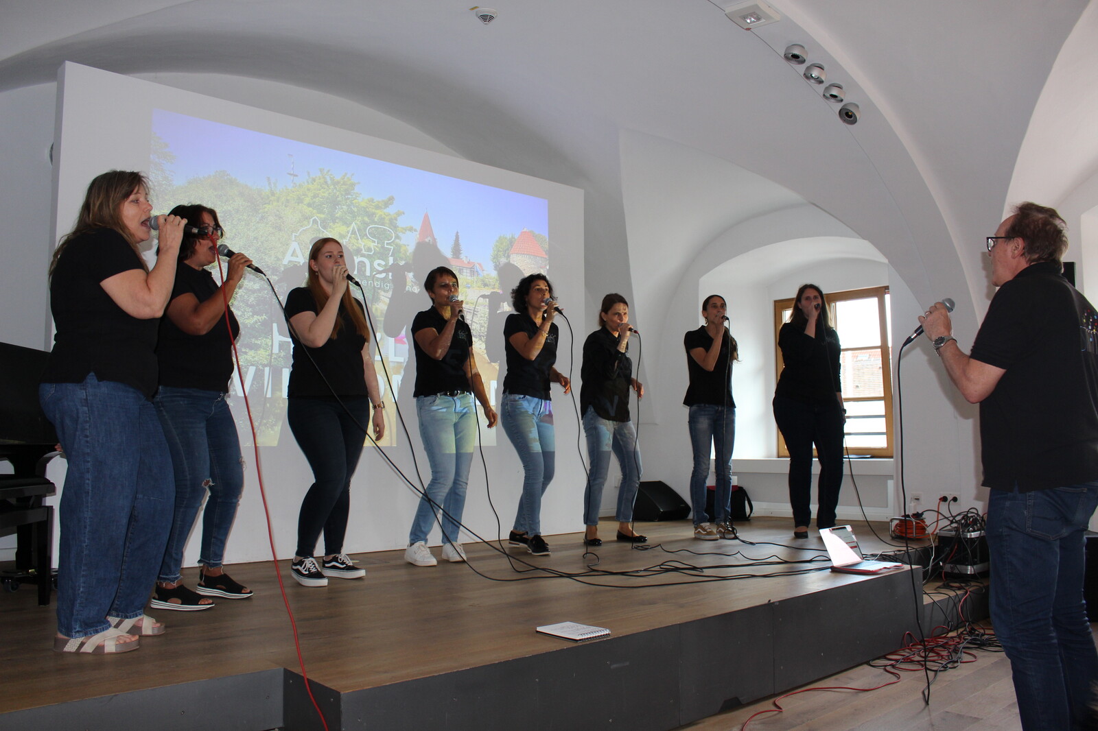 Mit dem Lied „One fine day“ eröffnete der Abensberger Chor „Stimmix“ mitreißend den Neubürgerempfang der Stadt Abensberg, der am Montagabend (10. Juni 2024) im Aventinum stattfand. Eingeladen wurden von der Stadtverwaltung alle Bürgerinnen und Bürger, die vom 1. Mai 2023 bis zum 30. April 2024 nach Abensberg gezogen sind – das waren 20 Ehepaare, 405 Einzelpersonen und 35 Familien; gekommen waren schließlich rund 70 Interessierte, die vom 1. Bürgermeister Dr. Bernhard Resch herzlich begrüßt und durch den Abend geleitet wurden. Die Neubürgerbegrüßung hat in Abensberg seit vielen Jahren Tradition; Mitarbeiter der Verwaltung und Personen des öffentlichen Lebens geben sich dabei ein Stelldichein und informieren die neuen Mitbürgerinnen und Mitbürger über Abensberg. Auch kleine Präsente werden dabei vergeben und die Werbegemeinschaft verlost noch am selben Abend Einkaufsgutscheine.