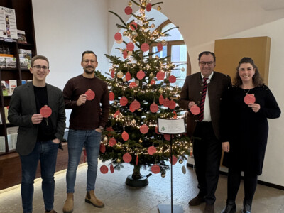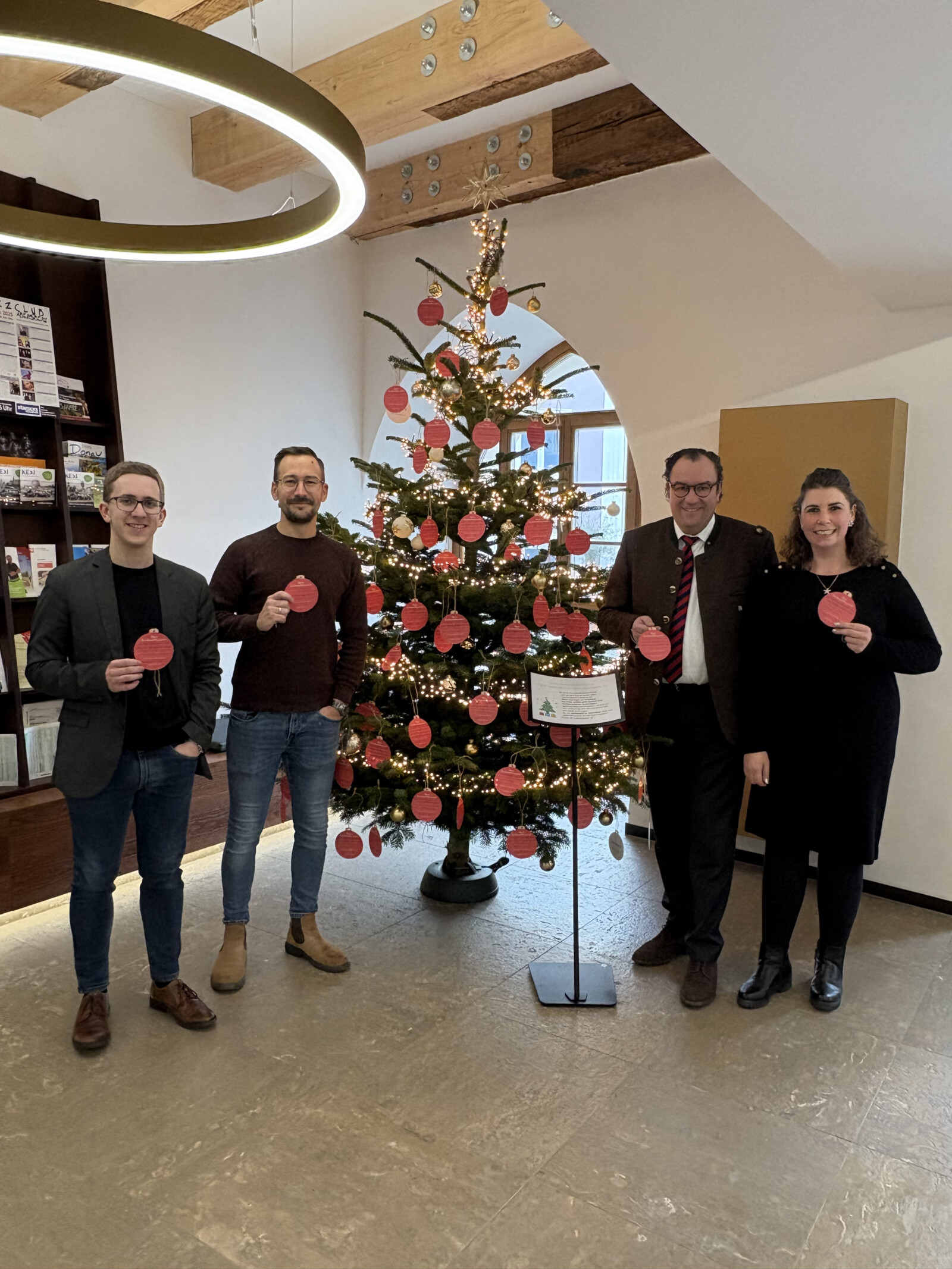Die großartige Idee zu dieser Aktion hat Carina Junker (im Titelbild rechts) gehabt. Bürgermeister Dr. Bernhard Resch unterstützte die Initiative sofort mit Feuereifer. Beim Schmücken des Baumes halfen außerdem Florian Bräu und Michael Förstl mit.