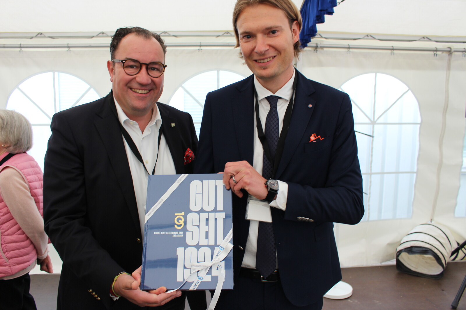 Nach der Begrüßung durch Geschäftsführer Martin Dreßen und Gerhard Tausendpfund vom GLATT-Eigentümer, der Büechl KG, erhielten die Gäste die aufwändig gemachte Unternehmenschronik überreicht, die die Geschichte von GLATT erstmals in Wort und Bild zusammenfasst.