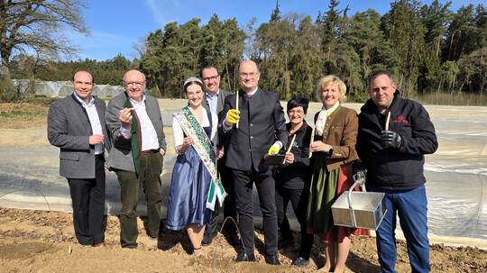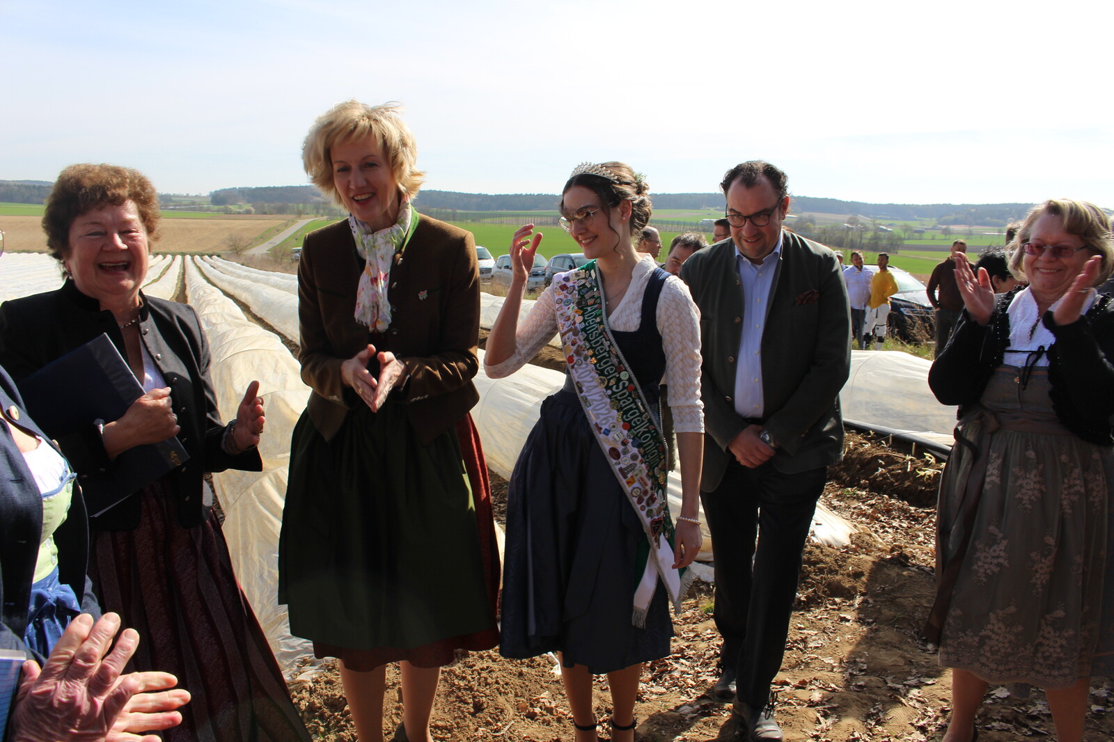 Zahlreiche Gäste aus der Landwirtschaft, Gesellschaft und der Politik, darunter Abensbergs 1. Bürgermeister Dr. Bernhard Resch, Kelheims Landrat Martin Neumeyer und Bundestagsabgeordneter Florian Oßner waren der Einladung gefolgt, um diesen besonderen Moment mitzuerleben. Die MAI-Muse sowie der Landfrauenchor, die das Spargellied anstimmten, sorgten für stimmungsvolle Unterhaltung.