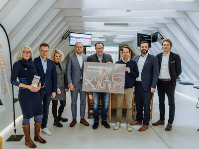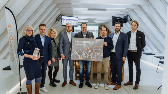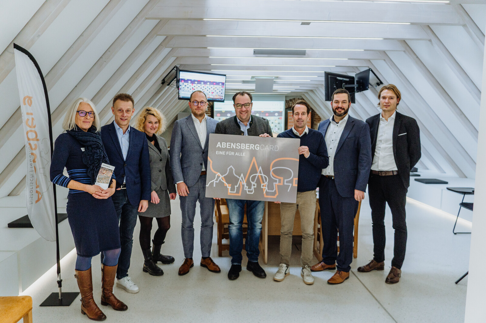 Auf dem Gruppenfoto v.l.n.r. Christine Allgeyer | KJF Diözese Regensburg, Walter Tuscher | MiA bewegt e.V., Carolin Wohlgemuth | Stadt Abensberg, Daniel Ritz | RNHS Steuerberatung, Bürgermeister Dr. Bernhard Resch, Dieter Deninger | trolleymaker, Christoph Wurm | Raiffeisenbank Kreis Kelheim, Martin Dreßen | Glatt Maschinenbau