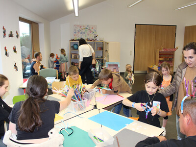 Nach dem Bühnenprogramm gab es in allen Klassenzimmern Stationen zum Informieren oder Mitmachen. In einem Klassenzimmer wurde man über die erste Mondlandung informiert, man konnte kosmische Haarreifen basteln, ein „Outer Space Bingo“ mitmachen und vieles mehr. Im Biergarten, organisiert vom Elternbeirat, gab es Getränke, Grillkäse, Wurst und Fleisch vom Grill, Käse und Brezen, Kaffee und Kuchen und einen Eisstand vom „La dolce vita“. Und die Schülerinnen und Schüler der „GSO Umwelt-Freaks“ boten Einkaufstaschen aus recyceltem Material an – angekündigt abschließend auf der Bühne, danach an einem Stand am Ausgang zum Biergarten, präsentiert mit einem überzeugenden Lächeln. Alles da – und auch Abensbergs 1. Bürgermeister Dr. Bernhard Resch war mit seiner Familie anwesend und gratulierte der Rektorin stellvertretend für alle zum „galaktischen“ Schulfest.