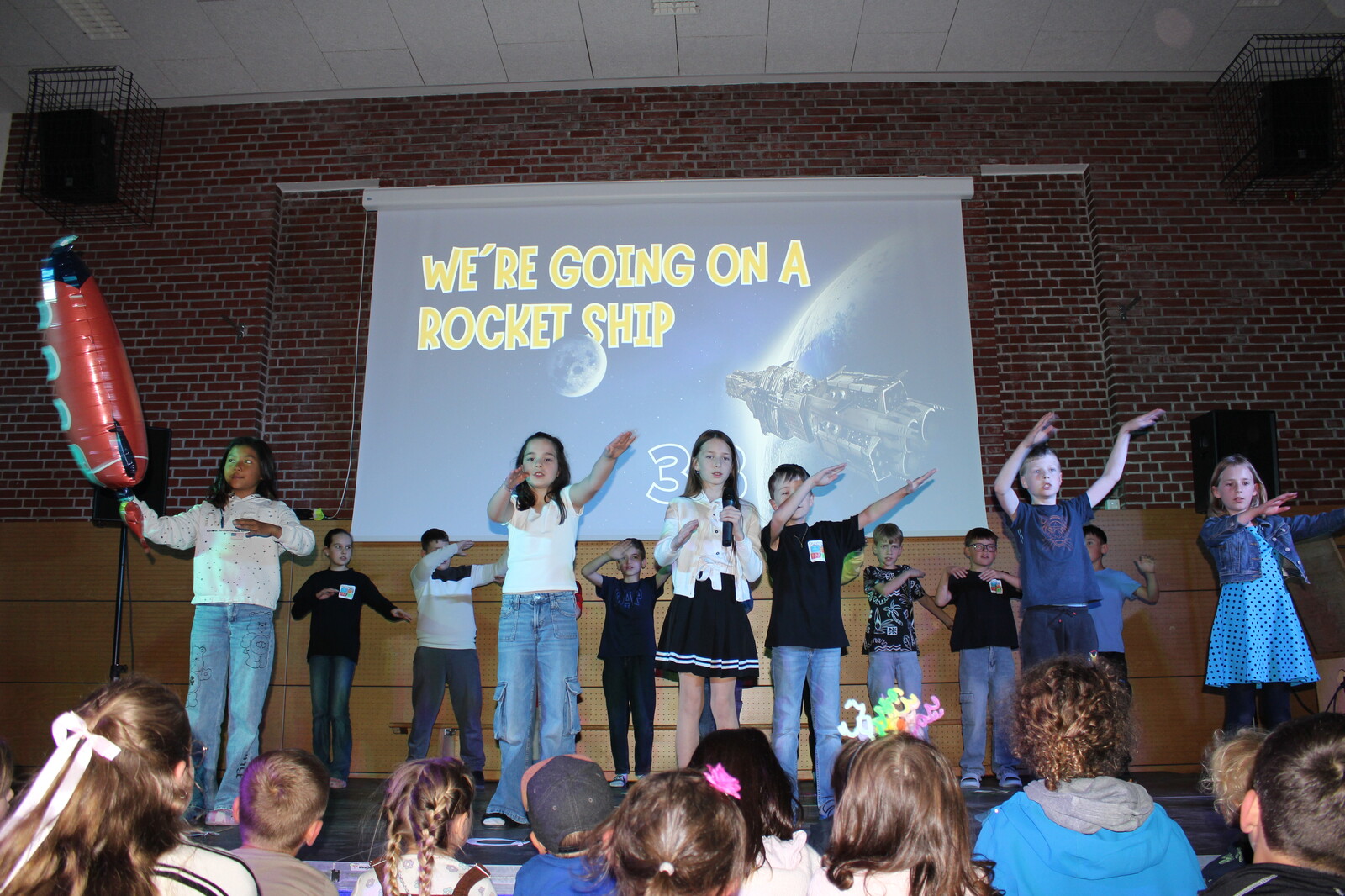 Und so waren die Beiträge der einzelnen Klassen zum Bühnenprogramm natürlich gespickt mit Planeten, Sternen, dem Sonnensystem, Freunden aus dem All, einer Maus auf Weltraumreise, dem „Weltraum-Rap“ und vielem mehr. Ob gesungen, getanzt oder in Erzählform – es machte den jungen Künstlerinnen und Künstlern viel Freude, ihren Eltern und Großeltern oder auch den ebenfalls anwesenden Vorschulkindern zu zeigen, was sie vorbereitet hatten. Das Bühnenprogramm der Grundschule Offenstetten wird so stark besucht, dass Rektorin Liane Köppl mit ihrem Kollegium bereits vor Jahren beschloss, die Aufführungen zweimal zu zeigen. Seither sind beide Termine voll besetzt.