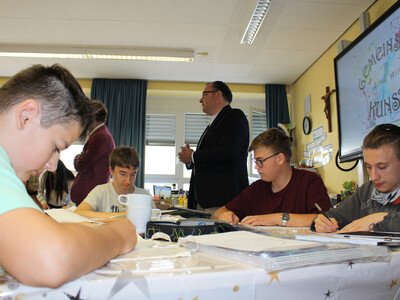 Die Verantwortlichen dahinter – Rektor Wolfgang Brey von der Mittelschule und 1. Bürgermeister Dr. Bernhard Resch, der Gesamtleiter des Cabrinizentrums Stefan Seehofer und Cabrini-Schulleiter Josef Schirm – waren voll des Lobes für die Aktion und schauten den Kunstbegeisterten gerne über die Schultern. Zeichnungen auf verschiedenen Unterlagen, Gipsfigürchen, Schmuck, verzierte Tassen und vieles mehr ist am Mittwoch entstanden. „Ein Mädchen hat mir gesagt, sie hat daheim geübt, damit viel Geld für andere Kinder zusammenkommt“, so Klassenlehrerin Sußebach.