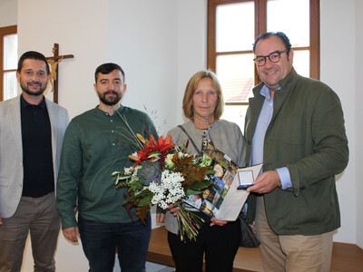 Bürgermeister Dr. Resch hakte gleich ein als Frau Strauch meinte, sie habe doch lediglich geputzt. „Es gibt kein ,ich habe bloß...‘. Egal was man macht, ob als Bürgermeister oder Hilfsarbeiter - entscheidend ist, dass man es gscheid macht!“ Frau Strauch habe ein beispielhaftes Berufsethos an den Tag gelegt, so Dr. Resch. Er überreichte ihr die Dankurkunde der Stadt Abensberg. Blerim Syla, dessen Verantwortungsbereich auch die Reinigung städtischer Gebäude beinhaltet, sagte: „Wenn in einer Uhr ein Zahnrädchen fehlt, bleibt sie stehen.“ Aus seinen Händen erhielt Frau Strauch die Blumen.