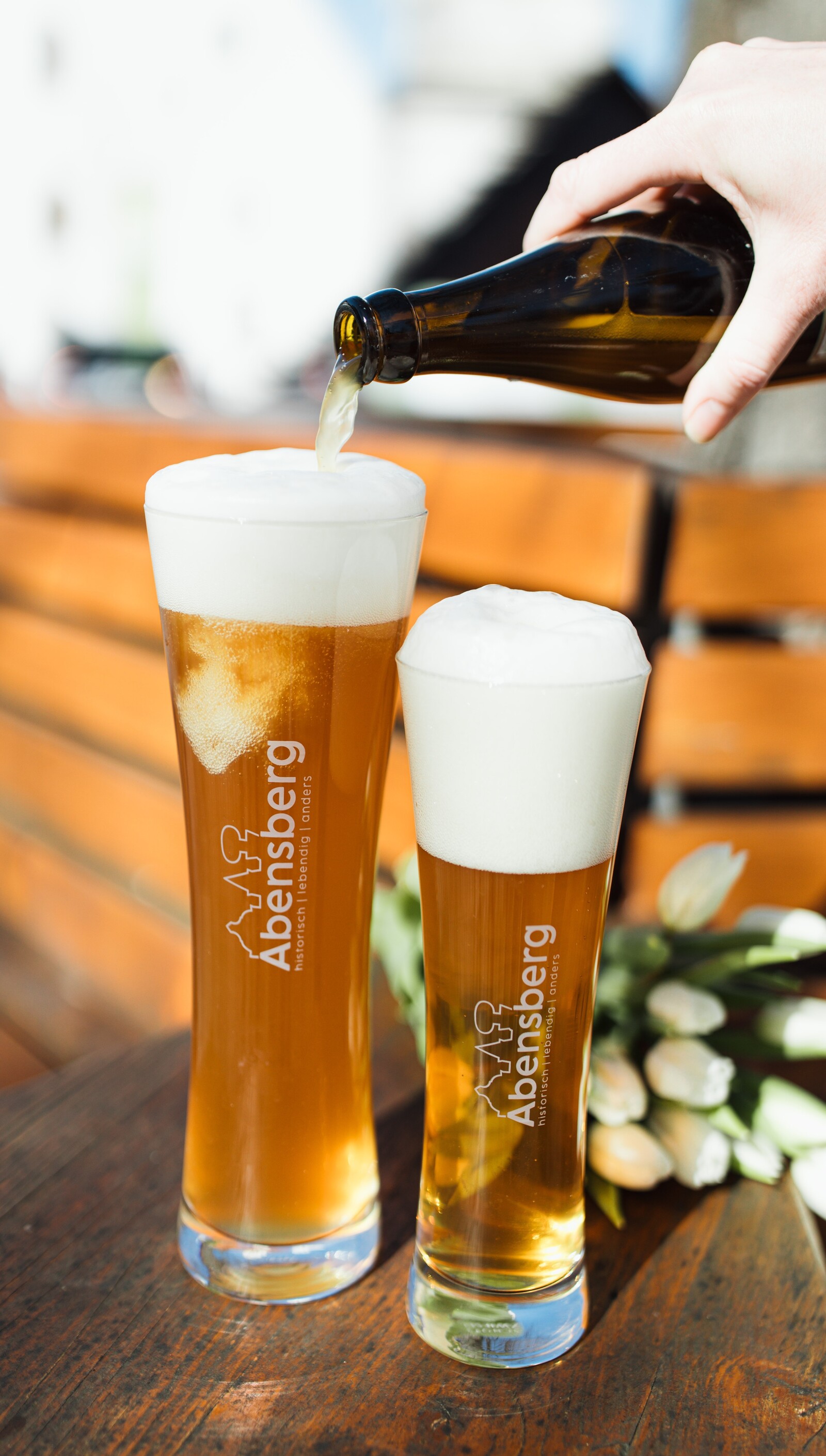 Im Frühling, wenn die Sonne lacht, ein kühles Weizen Freude macht: Am Rande des größten zusammenhängenden Hopfenanbaugebietes der Welt, gesegnet mit einem Bierfest mit Maßen für Massen, ist Abensberg mit heute noch drei Brauereien als Bierstandort etabliert. Vor allem unser Weißbierbrauer Kuchlbauer ist längst in der Welt bekannt und zieht mittels einzigartiger Architektur viele Besucher in die idyllische Kleinstadt zieht. Grund genug für die Kreativabteilung, zusätzlich zu den vorhanden Steinzeug-, und Glaskrügen im Shop nun endlich auch Weißbiergläser ins Sortiment aufzunehmen. Wie könnte man dieses besser genießen als aus unseren brandneuen Abensberg-Weizenstutzen von Schott Zwiesel. Ab sofort in 0,5 l und 0,33 l (auch als Pilsglas geeignet) im Shop der Touristinfo im Herzogskasten erhältlich. Ob im Set oder einzeln: Das ist ganz euch überlassen. Die schlanke, hohe Form und der leicht geschwungene Rand sorgen für eine ideale Schaumbildung und halten euer Weizenbier lange frisch. Perfekt für gemütliche Feierabende mit Freunden und Familie oder als ideales (OSTER)Geschenk für jede(n) Bierliebhaber(in) - ob aus Abensberg oder nah und fern.