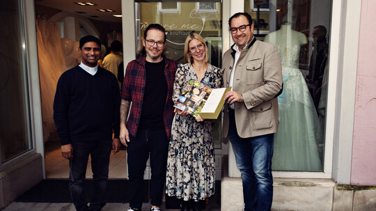 Abensbergs 1. Bürgermeister Dr. Bernhard Resch hat Corina Marré zur Neueröffnung ihres Brautmodegeschäfts gratuliert. Das „Marré Me“ startete sie vor vier Jahren in Sandharlanden, jetzt hat sie in der Abensberger Stadtmitte bei einer guten Gelegenheit zugegriffen – die ungenutzte Boutique zwischen OTT und Sparkasse in der Ulrichstraße: „Als ich mir mit meinem Mann die Boutique angesehen habe, war ich auf den ersten Blick begeistert. Ich habe die Kleider direkt darin hängen sehen. Durch die Schaufenster kann ich meine Brautkleider super präsentieren und man bekommt einen tollen Eindruck von den Einzelstücken. Ich hoffe, die Innenstadt mit meinen Kleidern zu bereichern.“ Das bestätigte ihr der Bürgermeister: „Ein Leerstand wird durch Ihr attraktives Angebot ersetzt! Davon profitiert unsere gesamte Innenstadt. Ich bin froh, dass Sie sich zu diesem Schritt entschlossen haben.“